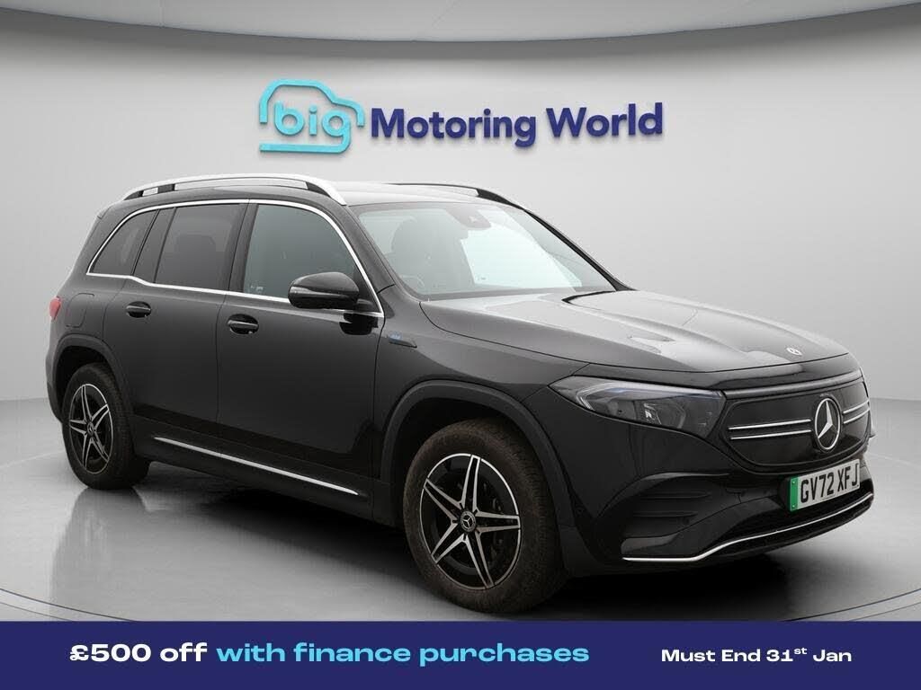 £500 towards your finance depo-Our Mercedes-Benz EQB is finished in Black. Specification includes a range of fantastic features including £500 towards your finance deposit, Comfort Pack, Third Row Seats, All Wheel Drive, 18'' alloy wheels, Apple CarPlay, AMG body styling, Parking Pack, Android Auto, Satellite Navigation Specification information is supplied by CAPHPI and may vary to the actual car. This data does not form any part of a buying contact. Please check specification prior to purchase in-store. The MOT is valid until February 2027, visit bigmotoringworld.co.uk for more photos, a 360 tour, service history and a free HPI report.Were BIG on peace of mind and this Black Mercedes-Benz EQB has completed our comprehensive 200 point inspection and passed all checks. Its ready for you to drive away with immediate collection in-store. We include a 90-day warranty as standard plus an option to extend for up to 3 years.Reserve this car exclusively for you, safely and securely at bigmotoringworld.co.uk, with a fully refundable £99 deposit. Test drive before you buy, with no commitment, no hassle and a completely haggle free experience. Still searching and want to see thousands more cars? We are BIG on choice with over 8000 cars to choose from.Visit our award winning web site bigmotoringworld.co.uk.Were Big Motoring World and were BIG on what matters to you.