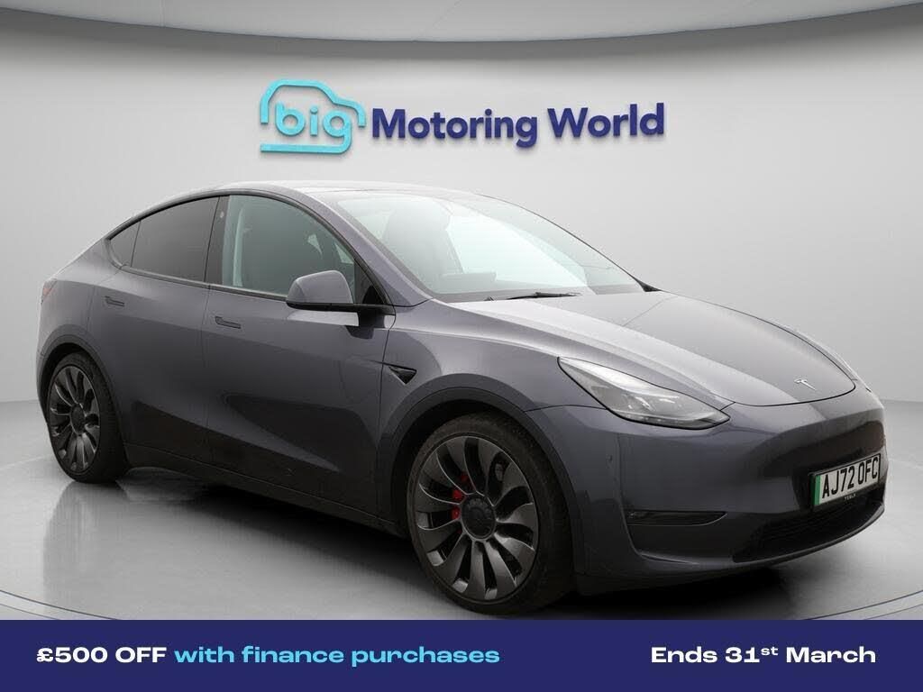 £500 towards your finance depo-Our Tesla Model Y is finished in Grey. Specification includes a range of fantastic features including £500 towards your finance deposit, All Wheel Drive, 21'' Alloy Wheels, Leather Seats, Satellite Navigation, Privacy Glass, Heated Seats, Wireless Phone Charging, Rear View Camera, Heated Rear Seats Specification information is supplied by CAPHPI and may vary to the actual car. This data does not form any part of a buying contact. Please check specification prior to purchase in-store. The MOT is valid until December 2026, visit bigmotoringworld.co.uk for more photos, a 360 tour, service history and a free HPI report.Were BIG on peace of mind and this Grey Tesla Model Y has completed our comprehensive 200 point inspection and passed all checks. Its ready for you to drive away with immediate collection in-store. We include a 90-day warranty as standard plus an option to extend for up to 3 years.Reserve this car exclusively for you, safely and securely at bigmotoringworld.co.uk, with a fully refundable £99 deposit. Test drive before you buy, with no commitment, no hassle and a completely haggle free experience. Still searching and want to see thousands more cars? We are BIG on choice with over 8000 cars to choose from.Visit our award winning web site bigmotoringworld.co.uk.Were Big Motoring World and were BIG on what matters to you.