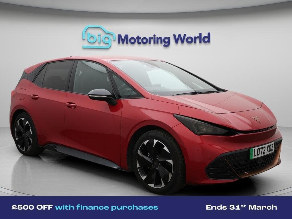 £500 towards your finance depo-Our CUPRA Born is finished in Red. Specification includes a range of fantastic features including £500 towards your finance deposit, Head up Display, 19'' Alloy wheels, Digital Cockpit, Lane Assist, Heated Seats, Ambient Lighting, 2 Zone Climate, Climate Control, Keyless Go Specification information is supplied by CAPHPI and may vary to the actual car. This data does not form any part of a buying contact. Please check specification prior to purchase in-store. The MOT is valid until February 2027, visit bigmotoringworld.co.uk for more photos, a 360 tour, service history and a free HPI report.Were BIG on peace of mind and this Red CUPRA Born has completed our comprehensive 200 point inspection and passed all checks. Its ready for you to drive away with immediate collection in-store. We include a 90-day warranty as standard plus an option to extend for up to 3 years.Reserve this car exclusively for you, safely and securely at bigmotoringworld.co.uk, with a fully refundable £99 deposit. Test drive before you buy, with no commitment, no hassle and a completely haggle free experience. Still searching and want to see thousands more cars? We are BIG on choice with over 8000 cars to choose from.Visit our award winning web site bigmotoringworld.co.uk.Were Big Motoring World and were BIG on what matters to you.-Multi Award Winning Website & Car Supermarket of the year WINNER 2018. Call now.