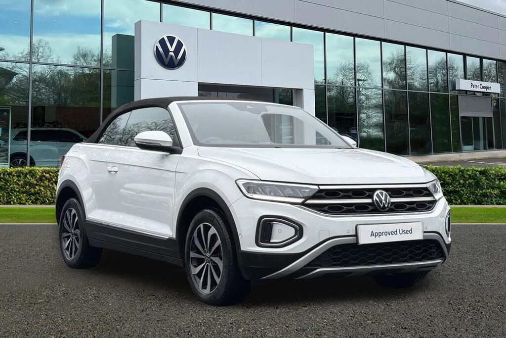 Solid paint, Rear view camera, 17'' Johannesburg alloy wheels with low rolling resistance and anti-theft wheel bolts, Heat insulating glass windscreen, Power windows with comfort operation and circuit breaker, Rain sensor, Windscreen wiper with intermittent wipe light, Black roof, Body colour door handles, Body colour rear spoiler, Body coloured bumpers and radiator grille with chrome trim and front fog lamps with chrome bezel, Chrome effect left and right trapezoid exhaust tailpipe fascia surround, Power operated canvas convertible top, Rear boot, Rear exhaust tailpipe, Volkswagen roundel, Ambient lighting with logo projection, Automatic hazard lights activation under emergency braking, Automatic headlight control with LED separate daytime running lights with coming/leaving home function, Dark red rear combination lamps in LED technology, Dusk sensor, Headlight range control, High level 3rd brake light, LED Headlights, LED rear number plate lights, Rear fog light on one side and reversing lights on both sides, Without exterior ambient lighting, Electronic parking brake, Electronic Stability Control (ESC) including ABS, ASR and EDL, Front and rear disc brakes, Front assist with autonomous emergency braking, Volkswagen roadside assistance, Adaptive cruise control and speed limiter, Driver alert system with fatigue detection, Modified key software - reduce switch off time for key status change to Long no motion, Multifunction front facing camera, Park assist including front and rear parking sensors, Auto dimming interior rear view mirror, Exterior mirrors aspherical on driver side, convex on front passenger side, Remote electrically foldable door mirrors, puddle lights and reverse activated passenger door mirror, 2 x 3-point seatbelts/outer rear seats with ECE label, Driver and front passenger airbag with front passenger airbag deactivation, Driver and front passenger safety-optimised head restraints, Drivers seatbelt reminder, Pedestrian monitoring, Predictive pedestrian protection, Rigid safety cell with front and rear crumple zones, Side airbag/thorax airbag system, for front passengers, Single tone horn, Three point height adjust front seatbelts + pretensioners, Tyre pressure loss indicator, Front and rear carpet mats with black stitching, Air care climatronic air conditoning system with active combination filter and 2-zone temperature control, 12V socket in centre console storage area, Black door lower parts with chrome trim, Chrome plated surround to light, mirror and window switch, Door and side trim panel with leatherette insert, Front centre armrest, Front cupholders x 2, Front door pockets, Heated multi function steering wheel with tiptronic, Height/reach adjust steering wheel, Lockable glove compartment with light, 2 LED front reading lights, Instrument lighting, white adjustable panel illumination, Interior light delay, Interior light in footwell, Interior lighting with switch off delay and contact switches on all doors, Interior white ambient lighting and surround lighting, Luggage compartment lighting, Sun visors with illuminated vanity mirrors, Bluetooth mobile phone interface, Diversity antenna for FM reception, Music playback - MP3, WMA and AAC files, SMS functionality - read, compose and send SMS messages using touch-screen display, Title and cover art display, USB-C Interface and USB charging socket, We Connect and We Connect Plus functionality, Start/stop system with brake energy recovery, Tailgate/trunk lid release from outside, Brake pad wear indicator, Car information display, Driver tips and journey analysis, Emergency call service, Multifunction computer with visual gear change recommendation for fuel consumption, Speedo and rev counter, electronic odometer, trip, service interval display and exterior temperature gauge, Warning sound and light for front seatbelts unfastened, Driver assistance pack without proactive passenger protection - T-Roc Cabriolet DSG, 2 seat bench in 2nd row, 50:50 Split folding re