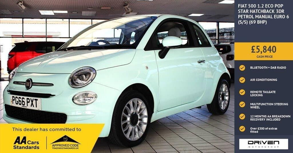 FIAT 500 1.2 ECO POP STAR HATCHBACK 3DR FINISHED IN SMOOTH MINT AND COMPLIMENTED WITH TWO TONE CHARCOAL INTERIOR, THIS VEHICLE HAS BEEN VERY WELL CARED FOR AND MAINTAINED PLUS COMPREHENSIVE PRE DELIVERY HEALTH CHECK COMPLETED PRIOR TO SALE AT 47814 MILES. KEY FEATURES INCLUDE ALLOY WHEELS, DAB RADIO WITH AUX/USB, MULTIFUNCTIONAL STEERING WHEEL CONTROLS, AIR CONDITIONING, ELECTRIC DOOR MIRRORS, BLUETOOTH, REMOTE BOOT RELEASE, CRUISE CONTROL, REMOTE CENTRAL LOCKING PLUS MUCH MORE. COMMITTED TO AA CARS STANDARDS: 3 MONTHS OR 3000 MILES WARRANTY INCLUDED WITH AN OPTION TO UPGRADE: 12 MONTHS AA BREAKDOWN RECOVERY INCLUDED: £75.00 CONTRIBUTION TOWARDS YOUR NEXT SERVICE/MOT AT ANY AA CARS STANDARD APPROVED WORKSHOP: WE STAND BY THE QUALITY OF OUR VEHICLES. WITH THE PURCHASE OF THIS VEHICLE, YOU WILL RECEIVE 3 MONTHS OR 3000 WARRANTY, 12 MONTHS AA BREAKDOWN RECOVERY, GIVING YOU ADDITIONAL PEACE OF MIND AND PROTECTION. ALL OUR CARS COME WITH AT LEAST 6 MONTHS MOT AND PRE SALE HEALTH CHECK AND ROAD TEST. OUR PROFESSIONAL TEAM ENSURES YOUR VEHICLE STAYS IN TOP CONDITION, AND YOU ENJOY A HASSLE-FREE OWNERSHIP EXPERIENCE. 4.7 STARS ON GOOGLE WITH OVER 550 REVIEWS: JOIN OUR COMMUNITY OF SATISFIED CUSTOMERS! OUR DEALERSHIP IS PROUD TO HAVE A 4.7 STAR RATING ON GOOGLE, BACKED BY OVER 550 POSITIVE REVIEWS. WE ARE COMMITTED TO PROVIDING EXCELLENT SERVICE AND HIGH-QUALITY VEHICLES. This Vehicle Comes Equipped with High Specification, Which Includes: - Drive this car home with complete confidence and satisfaction: All cars proudly offered by driven group are rigorously inspected, hpi checked and prepared to the highest standard To drive this car home, visit www.drivegroup.co.uk or call 01642-601999 to arrange an appointment with our sales team Please note we do not operate an organised distance selling scheme as defined by the consumer contracts (cancellation, information and additional charges) regulations 2013. Therefore, even if you choose to not view your vehicle at our premises prior to purchase,you will not be entitled to cancel your order under any 14 day cancellation period. All other statutory rights remain unaffected. Whilst every effort has been made to ensure the accuracy of the information contained in this website, please check with us about any item which may affect your decision to purchase. Driven motor group shall not be liable for any errors, inaccuracies or delays in content.