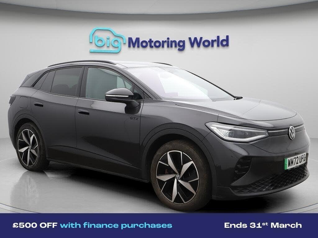 £500 towards your finance depo-Our Volkswagen ID.4 comes with optional extras worth £1,770. Specification includes a range of fantastic features including £500 towards your finance deposit, Panoramic Roof, All Wheel Drive, Head up Display, Part Leather Seats, Apple CarPlay, Adaptive Cruise Control, Massage Function Seats, Electric Seats, Android Auto Specification information is supplied by CAPHPI and may vary to the actual car. This data does not form any part of a buying contact. Please check specification prior to purchase in-store. The MOT is valid until February 2027, visit bigmotoringworld.co.uk for more photos, a 360 tour, service history and a free HPI report.Were BIG on peace of mind and this Grey Volkswagen ID.4 has completed our comprehensive 200 point inspection and passed all checks. Its ready for you to drive away with immediate collection in-store. We include a 90-day warranty as standard plus an option to extend for up to 3 years.Reserve this car exclusively for you, safely and securely at bigmotoringworld.co.uk, with a fully refundable £99 deposit. Test drive before you buy, with no commitment, no hassle and a completely haggle free experience. Still searching and want to see thousands more cars? We are BIG on choice with over 8000 cars to choose from.Visit our award winning web site bigmotoringworld.co.uk.Were Big Motoring World and were BIG on what matters to you.