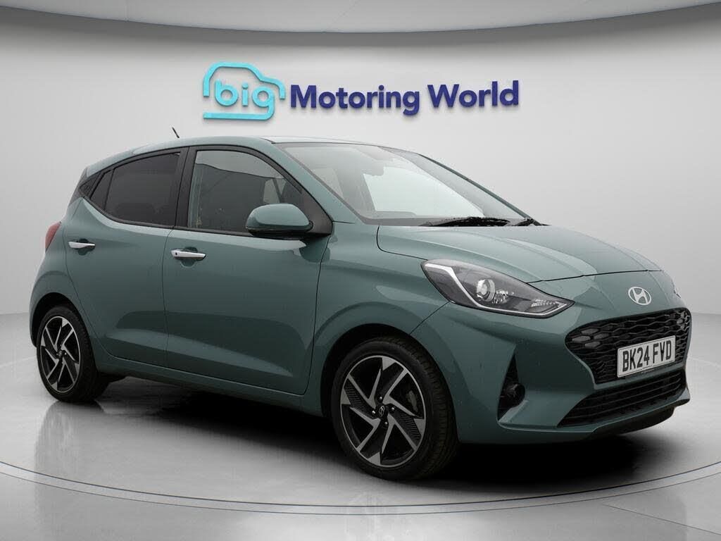 Apple CarPlay,Premium-Our Hyundai i10 is finished in Green. Specification includes a range of fantastic features including Apple CarPlay, Premium, Android Auto, Privacy Glass, Heated Seats, Rear View Camera, Heated Steering Wheel, Bluetooth, Parking Sensors, Cruise Control Specification information is supplied by CAPHPI and may vary to the actual car. This data does not form any part of a buying contact. Please check specification prior to purchase in-store. The MOT is valid until March 2027, visit bigmotoringworld.co.uk for more photos, a 360 tour, service history and a free HPI report.Were BIG on peace of mind and this Green Hyundai i10 has completed our comprehensive 200 point inspection and passed all checks. Its ready for you to drive away with immediate collection in-store. We include a 90-day warranty as standard plus an option to extend for up to 3 years.Reserve this car exclusively for you, safely and securely at bigmotoringworld.co.uk, with a fully refundable £99 deposit. Test drive before you buy, with no commitment, no hassle and a completely haggle free experience. Still searching and want to see thousands more cars? We are BIG on choice with over 8000 cars to choose from.Visit our award winning web site bigmotoringworld.co.uk.Were Big Motoring World and were BIG on what matters to you.