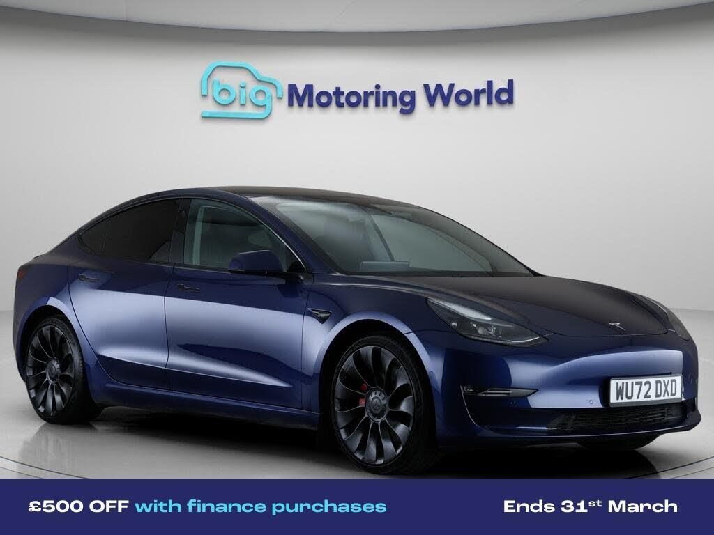 £500 towards your finance depo-Our Tesla Model 3 is finished in Blue. Specification includes a range of fantastic features including £500 towards your finance deposit Specification information is supplied by CAPHPI and may vary to the actual car. This data does not form any part of a buying contact. Please check specification prior to purchase in-store. The MOT is valid until September 2026, visit bigmotoringworld.co.uk for more photos, a 360 tour, service history and a free HPI report.Were BIG on peace of mind and this Blue Tesla Model 3 has completed our comprehensive 200 point inspection and passed all checks. Its ready for you to drive away with immediate collection in-store. We include a 90-day warranty as standard plus an option to extend for up to 3 years.Reserve this car exclusively for you, safely and securely at bigmotoringworld.co.uk, with a fully refundable £99 deposit. Test drive before you buy, with no commitment, no hassle and a completely haggle free experience. Still searching and want to see thousands more cars? We are BIG on choice with over 8000 cars to choose from.Visit our award winning web site bigmotoringworld.co.uk.Were Big Motoring World and were BIG on what matters to you.