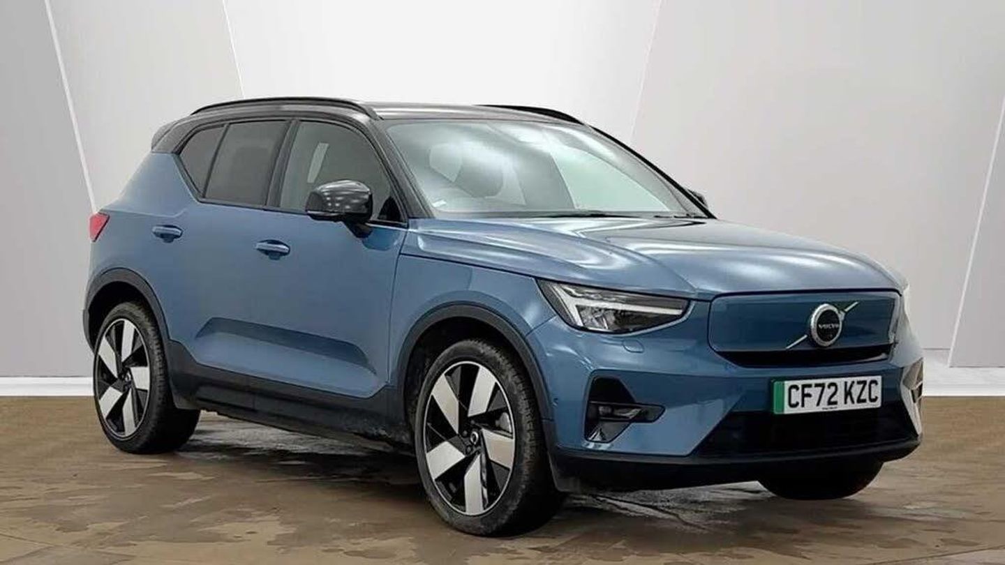 Sculpted gear shift, Charcoal interior inserts, Roof top in contrast colour. Black Stone, Door mirror covers. Black Stone, Connect Suede textile/Microtech upholstery, Shift-by-wire single speed transmission. AWD, 2-Zone Electronic Climate Control, Afterrun parking climate, Passenger Airbag Cut Off Switch, Dual Stage Driver and Passenger Airbags, Heat Pump (Enhanced Cabin Heating and Cooling Efficiency with Optimal Vehicle Range), Driver Knee Airbag, Panoramic roof, Charcoal headlining, Road Sign Information, Driver Alert Control with Lane Keeping Aid, Colour Co-ordinated Front Covered Grille and Surround, Heated grill emblem, LED headlights, Headlight Cleaning System, Rear fog lights switched off when trailer fog lights are running, Front LED Foglights, 12-inch driver display, Google Assistant. Google Maps and Google Play Store - included for 4 years, Pilot Assist (up to 80mph) Adaptive Cruise Control with Distance Alert & Queue Assist, Pilot Assist, Adjustable Speed Limiter, Volvo Cars App remote functions - included for 4 years, Fresh Air Subwoofer, DAB (Digital Audio Broadcasting) Radio, Premium Sound by Harman Kardon, Autofolding Heated Power Door Mirrors, Wireless/Inductive Mobile Phone Charging, Automatic door locking, Remote key, Small storage. front, Double locking, Tinted rear windows, BLIS? and Cross Traffic Alert, Anti-theft Alarm including Immobiliser. Volume Sensor and Level Sensor, Power Child Locks, Power Operated Tailgate, Keyless Drive (includes Keyless Entry and Keyless Start), 'CleanZone' Air Quality System and Pollen Filter, GloveBox Bag Hook, Digital owners manual, Topography decor, Power Driver's Seat with Memory, Power Passenger Seat, Heated front seats, Heated Rear Seats - Outer Positions, Power Folding Rear Seat Headrests, 5 seats, Mechanical release second seat row, Manual cushion extensions. driver and passenger, 4-Way Lumbar Support, Sport Textile Mats. Charcoal, Load Protection Net, Foldable load floor with cargo divider and grocery bag holder, Rear centre armrest, i-Size/ISOFIX mounting points. front seat, Illuminated Vanity Mirrors, Rear Footwell and Side Step Illumination, Automatically dimmed inner and outer rear view mirrors, Front and 2nd Row Centre Armrest with Cupholders, Front load compartment, Glossy black tunnel console, Chassis, Hill Start Assist, Indirect Tyre Pressure Monitoring System (iTPMS), Oncoming Lane Mitigation, Rear Collision Warning and Mitigation Support, Hill Descent Control, EBL. Flashing Brake Light and Hazard Warning, Heated Steering Wheel, Tailored sport steering wheel. Charcoal, Adaptive power steering, 20? 5-Spoke Black Diamond Cut. rear, 20? 5-Spoke Black Diamond Cut, Temporary mobility kit, Locking Wheel Nuts, Body-coloured door handles with ground lighting, Glossy Black Window Trim, Roof Rails - Integrated. High Gloss Black, Recharge aluminium front tread plates, Recharge embossed logo on C/D-pillar, Tempered side windows, Rain Sensor - Automatic Windscreen Wiper Activation, Park assist. front. rear and sides, Ticket holder, Electric cabin heater and cooler, 360? camera, Protective cap kit. Matt Tech Grey, Charging station cable. 6m (22kW), Apple CarPlay, Comfort Front Seats, 9-inch centre display, Home charging cable. mobile 7m (10A), Whiplash injury protection system, IC (Inflatable Curtains) - Full Length, Side impact protection, ISOFIX Attachment (Outer Rear Seats), Steering Wheel Remote Infotainment Control, Humidity sensor, Bluetooth? Handsfree System