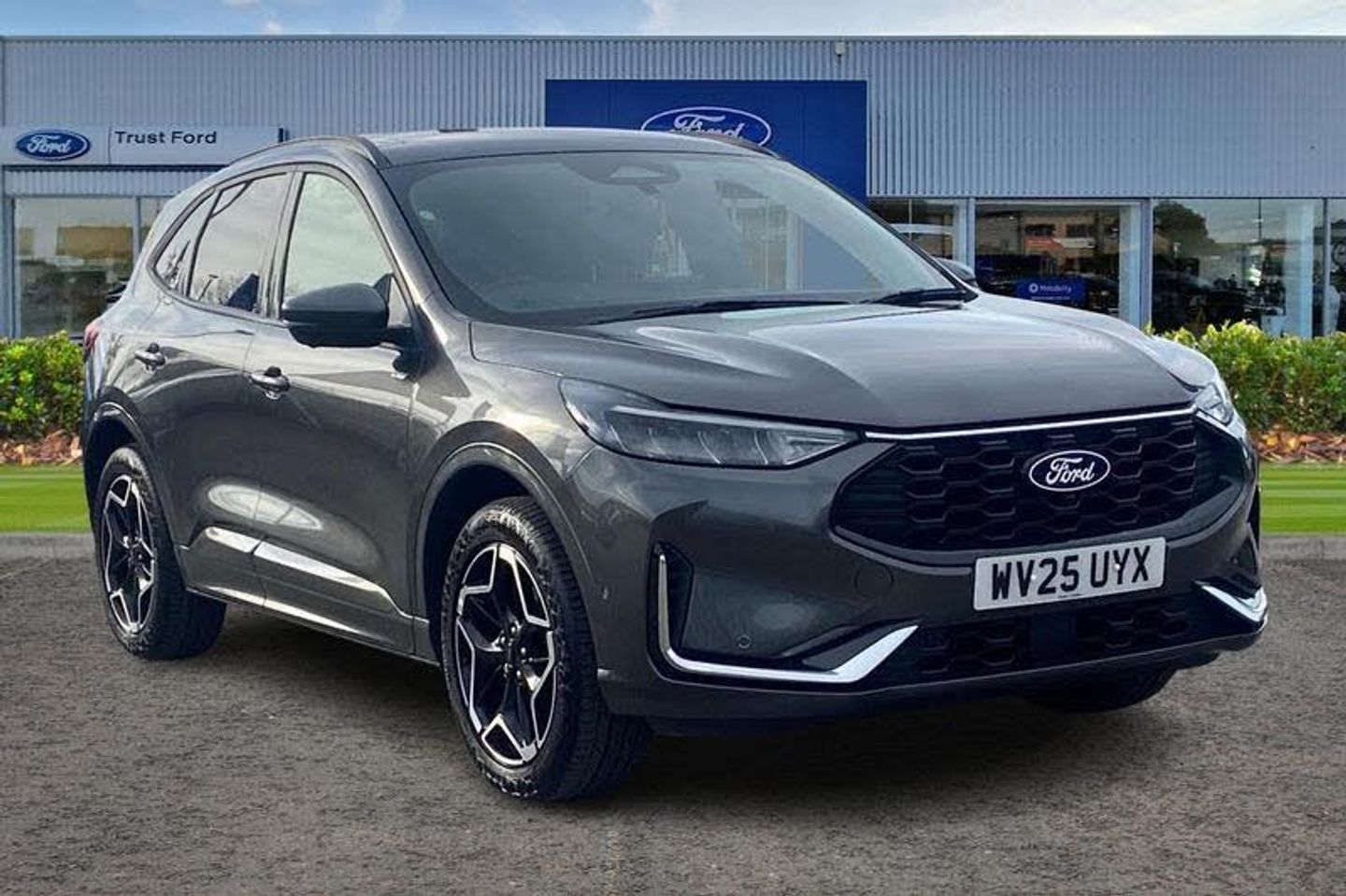 BLIS Blind Spot Information System, Adaptive Cruise Control, 360 Camera, Panoramic Glass Roof , Electric Memory Seats, Heated Seats, Heated Steering Wheel, Power Tailgate, Charging Mat, Ford SYNC 4 Navigation with 13 touchscreen, Bang Olufsen Sound System , Dual Zone Climate Control, Push Button Start, Privacy Glass, Part Leather Seats , Cruise Control + Speed Limiter, Lane keeping aid with lane departure warning, Quickclear heated windscreen, 12.3 digital colour instrument cluster, Clear exit assist, e-Call (emergency call), Ford easy fuel, DAB radio, emergency assistance, Andriod Auto/Apple CarPlay, 5G modem & Ford Pass connect, Power assist steering, Selectable drive modes, Service interval indicator, Auto headlamps with high and low beam, Black roof rails, Body colour bumpers, Front LED fog lamps, Large rear spoiler, LED daytime running lights, LED rear lights, LED third brake light, Pop out door edge protectors, Power front/rear windows with global close, Power heated folding door mirrors with puddle lights, memory function and camera, Rain sensing wipers, Rear side wing doors, Rear wiper, ST-Line body styling kit, 2nd row sliding seats, Front and rear head restraints, Rear centre head restraint, Single front passenger seat, Sports seats, 3x3 point rear seatbelts, Airbags - front driver/passenger, front and rear curtain, Drivers knee airbag, Dynamic brake support, Electronic stability control (ESC) and ABS, Evasive steering assist, Ford MyKey Gen 2 safety system, Manual child proof rear door locks, Pre collision assist with autonomous emergency braking, Rear seat Occupancy alert, Red brake calipers, Tyre pressure monitoring system