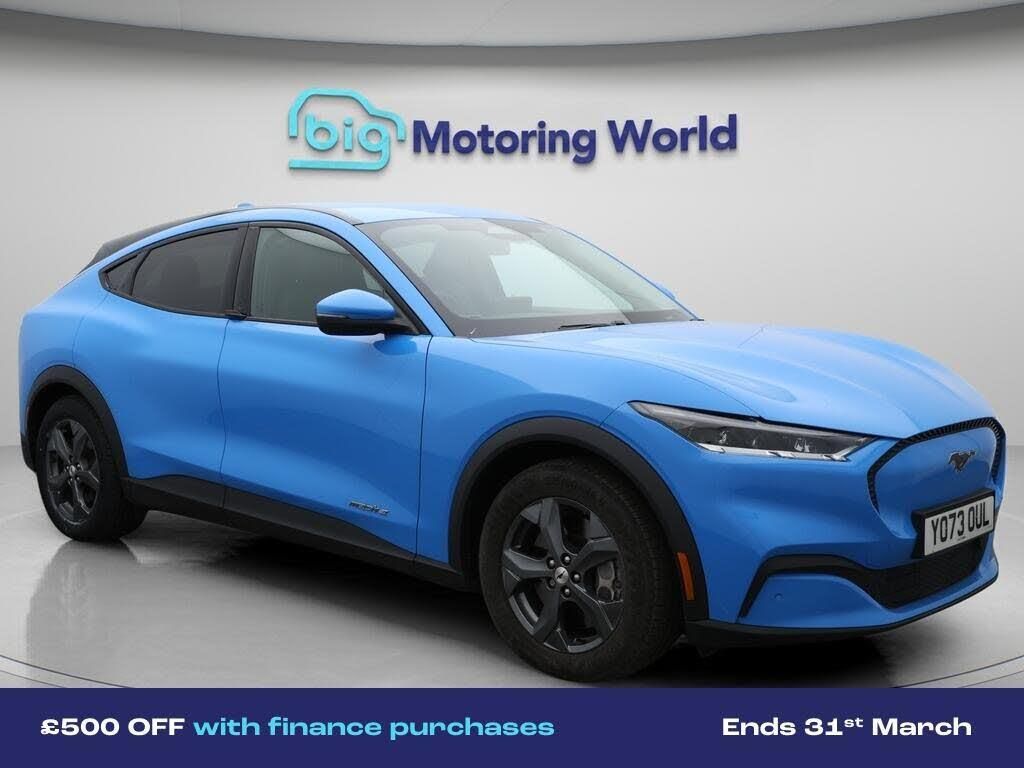 £500 towards your finance depo-Our Ford Mustang Mach-E comes with optional extras worth £1,150. Specification includes a range of fantastic features including £500 towards your finance deposit, 18'' alloy wheels, Leather Seats, Apple CarPlay, Adaptive Cruise Control, Satellite Navigation, Ford SYNC, Privacy Glass, Heated Seats, Rear View Camera Specification information is supplied by CAPHPI and may vary to the actual car. This data does not form any part of a buying contact. Please check specification prior to purchase in-store. The MOT is valid until February 2027, visit bigmotoringworld.co.uk for more photos, a 360 tour, service history and a free HPI report.Were BIG on peace of mind and this Blue Ford Mustang Mach-E has completed our comprehensive 200 point inspection and passed all checks. Its ready for you to drive away with immediate collection in-store. We include a 90-day warranty as standard plus an option to extend for up to 3 years.Reserve this car exclusively for you, safely and securely at bigmotoringworld.co.uk, with a fully refundable £99 deposit. Test drive before you buy, with no commitment, no hassle and a completely haggle free experience. Still searching and want to see thousands more cars? We are BIG on choice with over 8000 cars to choose from.Visit our award winning web site bigmotoringworld.co.uk.Were Big Motoring World and were BIG on what matters to you.