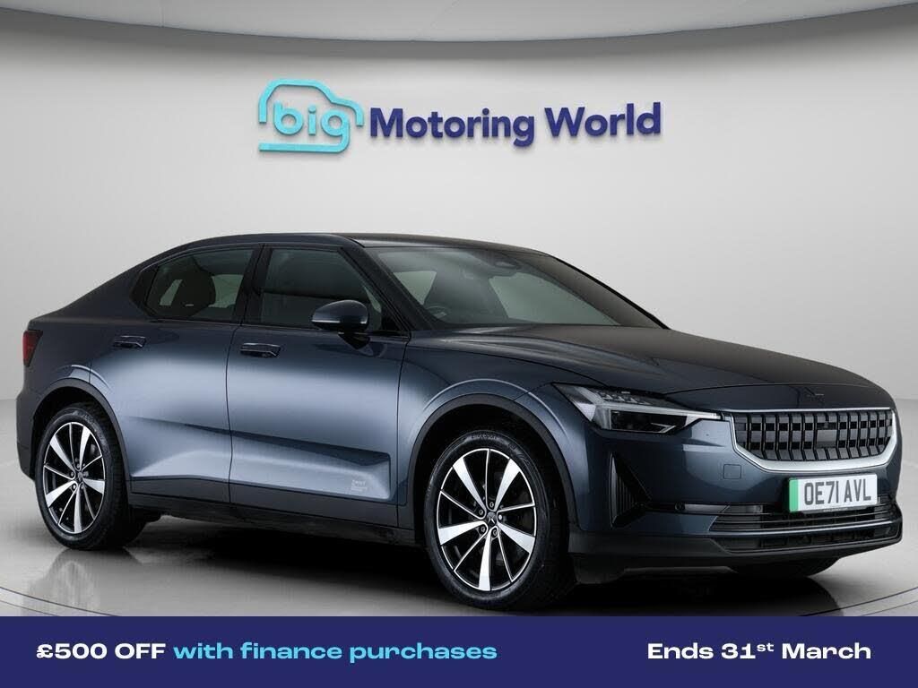 £500 towards your finance depo-Our Polestar Polestar 2 is finished in Blue. Specification includes a range of fantastic features including £500 towards your finance deposit, Dynamic Chassis Control, 19'' Alloy wheels, Apple CarPlay, Satellite Navigation, Heated Seats, Rear View Camera, Memory Seats, Internet, Bluetooth Specification information is supplied by CAPHPI and may vary to the actual car. This data does not form any part of a buying contact. Please check specification prior to purchase in-store. The MOT is valid until February 2027, visit bigmotoringworld.co.uk for more photos, a 360 tour, service history and a free HPI report.Were BIG on peace of mind and this Blue Polestar Polestar 2 has completed our comprehensive 200 point inspection and passed all checks. Its ready for you to drive away with immediate collection in-store. We include a 90-day warranty as standard plus an option to extend for up to 3 years.Reserve this car exclusively for you, safely and securely at bigmotoringworld.co.uk, with a fully refundable £99 deposit. Test drive before you buy, with no commitment, no hassle and a completely haggle free experience. Still searching and want to see thousands more cars? We are BIG on choice with over 8000 cars to choose from.Visit our award winning web site bigmotoringworld.co.uk.Were Big Motoring World and were BIG on what matters to you.