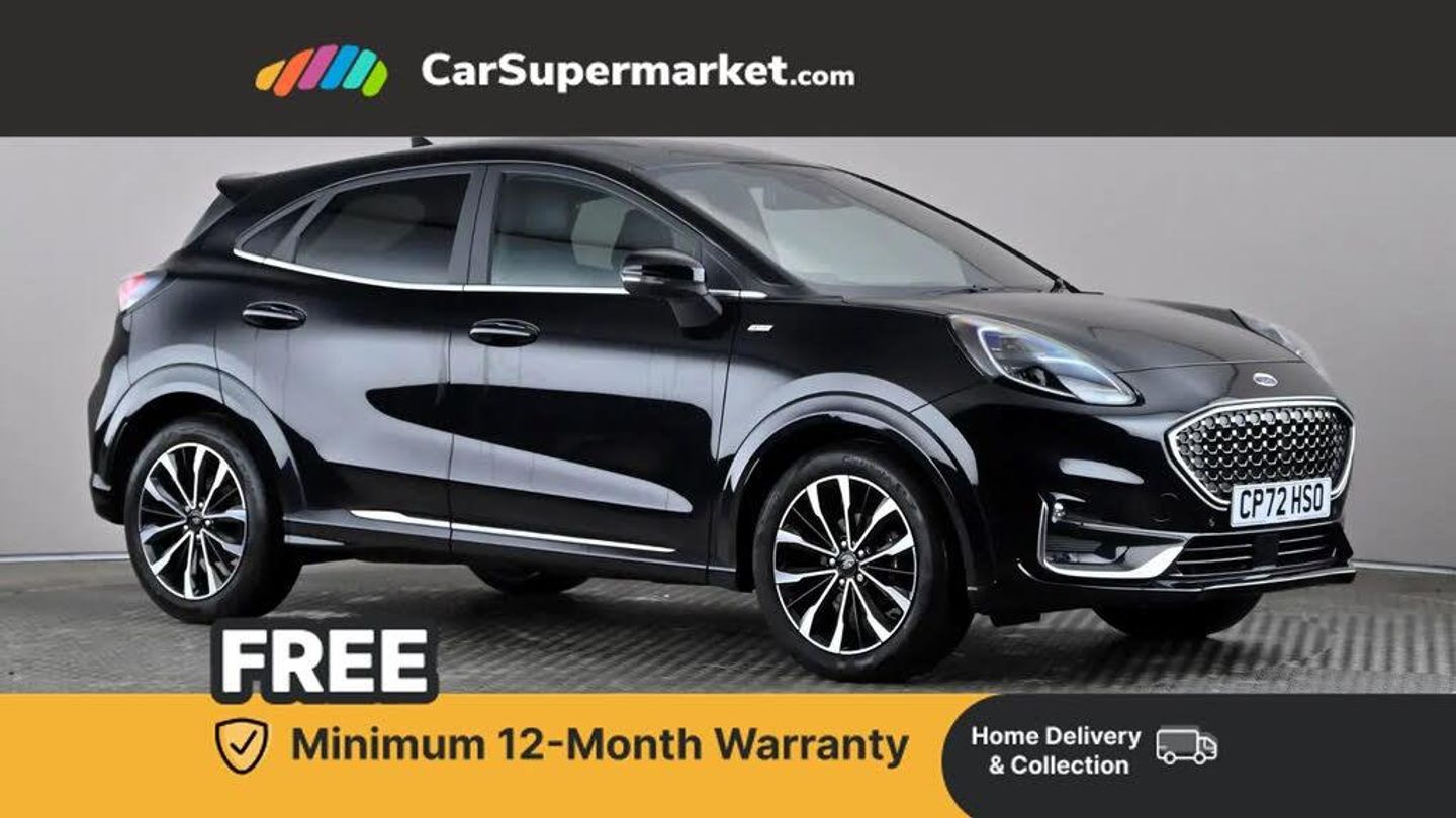 Parking Sensors, Lane Departure Warning, Traffic Sign Recognition, Privacy Glass, Quickclear Heated Windscreen, Wireless Phone Charging, Sat Nav, Keyless Entry;Ford Puma 1.0 EcoBoost Hybrid mHEV ST-Line Vignale DCT - Black. Apple CarPlay and Android Auto, satellite navigation, wireless phone charging, leather upholstery, heated seats, heated steering wheel, digital cockpit, keyless entry, privacy glass and Premium Sensico interior (£275 Agate Black option). Last serviced 12/02/2025. MOT due: 01/12/2026