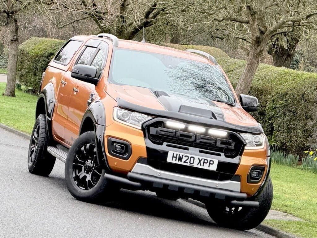 This 2020 Ford Ranger Wildtrak pickup is a standout example, having been cherished by just one owner from new and boasting a full service history. With only 52,000 miles on the clock, this vehicle is exceptionally low mileage for its age. It features a robust 3.2 litre TDCi diesel engine, paired with a smooth automatic transmission and a capable four wheel drive system, chain driven, raptor body kit, custom truck, full service history, apple car play, android auto, double canopy, tow pack, full leather, sat nav, reverse camera, all meeting the Euro 6 emissions standard. This Wildtrak derivative is designed for both work and adventure, offering a substantial towing weight of 3500 kg. The Wildtrak trim level ensures this Ranger is well equipped for any task. Its impressive towing capacity and four wheel drive capability make it a superior choice for those needing to haul heavy loads or tackle challenging terrain. The combination of its single owner provenance, comprehensive service record, and low mileage signifies a vehicle that has been meticulously maintained and is ready for its next chapter.