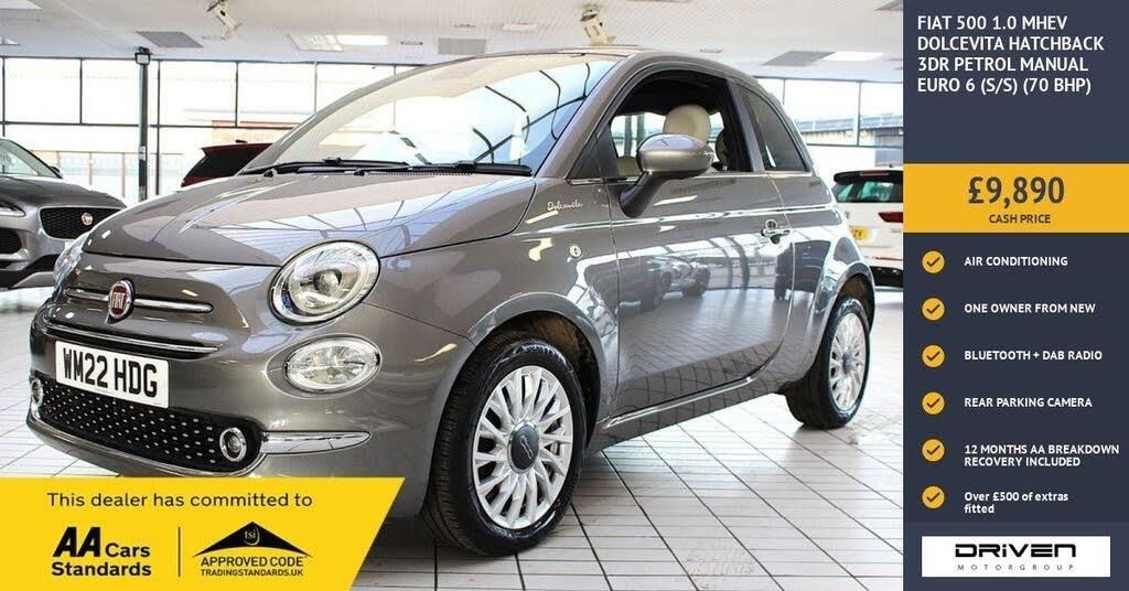 FIAT 500 1.0 MHEV DOLCEVITA HATCHBACK 3DR FINISHED IN ELECTROCLASH GREY AND COMPLIMENTED WITH WHITE/BLACK CLOTH TRIM WITH PART BLACK LEATHER INTERIOR, THIS VEHICLE HAS BEEN VERY WELL CARED FOR AND MAINTAINED WITH DOCUMENTED SERVICE HISTORY PLUS COMPREHENSIVE PRE DELIVERY HEALTH CHECK AND SERVICE COMPLETED PRIOR TO SALE AT 17711 MILES. KEY FEATURES INCLUDE ALLOY WHEELS, HD TOUCHSCREEN, DAB RADIO, AIR CONDITIONING, SMARTPHONE INTEGRATION, CRUISE CONTROL, ELECTRIC HEATED ADJUSTABLE DOOR MIRRORS, FIXED GLASS SUNROOF, REAR PARKING SENSORS, SPEED LIMITER, STEERING WHEEL AUDIO CONTROLS, KEYLESS GO, AUTOMATIC HEALDIGHTS PLUS MUCH MORE. COMMITTED TO AA CARS STANDARDS: 3 MONTHS OR 3000 MILES WARRANTY INCLUDED WITH AN OPTION TO UPGRADE: 12 MONTHS AA BREAKDOWN RECOVERY INCLUDED: £75.00 CONTRIBUTION TOWARDS YOUR NEXT SERVICE/MOT AT ANY AA CARS STANDARD APPROVED WORKSHOP: WE STAND BY THE QUALITY OF OUR VEHICLES. WITH THE PURCHASE OF THIS VEHICLE, YOU WILL RECEIVE 3 MONTHS OR 3000 WARRANTY, 12 MONTHS AA BREAKDOWN RECOVERY, GIVING YOU ADDITIONAL PEACE OF MIND AND PROTECTION. ALL OUR CARS COME WITH AT LEAST 6 MONTHS MOT AND PRE SALE HEALTH CHECK AND ROAD TEST. OUR PROFESSIONAL TEAM ENSURES YOUR VEHICLE STAYS IN TOP CONDITION, AND YOU ENJOY A HASSLE-FREE OWNERSHIP EXPERIENCE. 4.7 STARS ON GOOGLE WITH OVER 550 REVIEWS: JOIN OUR COMMUNITY OF SATISFIED CUSTOMERS! OUR DEALERSHIP IS PROUD TO HAVE A 4.7 STAR RATING ON GOOGLE, BACKED BY OVER 550 POSITIVE REVIEWS. WE ARE COMMITTED TO PROVIDING EXCELLENT SERVICE AND HIGH-QUALITY VEHICLES. This Vehicle Comes Equipped with High Specification, Which Includes: - Drive this car home with complete confidence and satisfaction: All cars proudly offered by driven group are rigorously inspected, hpi checked and prepared to the highest standard To drive this car home, visit www.drivegroup.co.uk or call 01642-601999 to arrange an appointment with our sales team Please note we do not operate an organised distance selling scheme as defined by the consumer contracts (cancellation, information and additional charges) regulations 2013. Therefore, even if you choose to not view your vehicle at our premises prior to purchase,you will not be entitled to cancel your order under any 14 day cancellation period. All other statutory rights remain unaffected. Whilst every effort has been made to ensure the accuracy of the information contained in this website, please check with us about any item which may affect your decision to purchase. Driven motor group shall not be liable for any errors, inaccuracies or delays in content.