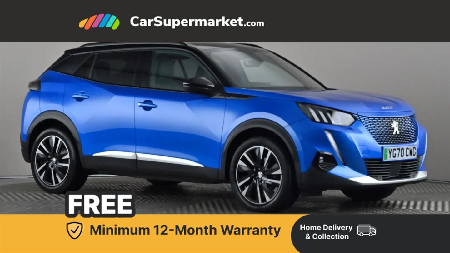 Bluetooth, Parking Sensors, Apple CarPlay, Android Auto, Peugeot i-Cockpit, Sat Nav, Heated Front Seats, 18" Alloy Wheels, Panoramic Roof, Rear View Camera;YG70CWO - Peugeot 2008 100kW GT Line 50kWh Auto - Blue. All-electric SUV featuring Peugeot i-Cockpit, satellite navigation, Apple CarPlay, Android Auto, heated front seats, parking sensors and 18" alloy wheels. Last serviced 09/10/2025. MOT due: 22/07/2026