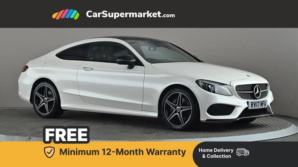 Active park assist with parktronic system,Attention assist,Bluetooth interface for hands free telephone,Collision prevention assist plus,DYNAMIC SELECT with a choice of driving modes (ECO, Comfort, Sport, Sport+ and Individual),Garmin Map Pilot navigation system with SD card, touchpad and voice control,Instrument cluster with 5.5-inch TFT multi-function display,Multi function trip computer,Outside temperature gauge,Remote boot release,Service indicator (ASSYST),Speed sensitive steering,Sport exhaust system,2 USB ports,Audio 20 radio/CD with 7" colour display with multi touch keypad,DAB digital radio module,Frontbass loudspeakers,Media interface,Steering column mounted multifunction controls,Adaptive brake lights,AMG front, rear apron and side skirts,Auto dimming driver's door mirror,Auto dimming rear view mirror,Body coloured bumpers,Chrome grille surround,Door sill plates with "Mercedes-Benz" lettering,Electric adjustable/heated/folding door mirrors,Electric front sliding and fixed rear panoramic glass sunroof,Electric windows one touch open/close,Green tinted glass,Heated windscreen washers,LED daytime running lights,LED tail lights,Radiator grille with integral star,Rain sensor windscreen wipers,Side windows surround in polished aluminium,Twin chrome exhaust tailpipes,2 cupholders in front centre console,2 rear head restraints,3 spoke flat bottom multi-function leather AMG steering wheel,4-way lumbar support for drivers seat,4-way lumbar support for front passenger seat,40:20:40 split folding rear seats,Advanced multicolour ambient light and LED interior light,Auto dual-zone climate control system,Auto Mercedes-Benz child seat recognition sensor,Door courtesy lamps,Electric front seats,Electric height adjustable front seats,Front centre armrest with storage compartment,Front footwell illumination,Heated front seats,Height/reach adjustable steering column,Illuminated front/rear door handle recesses,Illuminated glovebox,Isofix rear child seat fastenings,LED reading lights,Sports pedals with stainless steel surfaces and rubber studs,Sports seats with integrated headrests,Steering wheel gearshift paddles,Sunvisors with illuminated vanity mirrors,Memory pack - C Class,Seat comfort pack - C Class,Stowage space pack - C Class,2 rear seatbelts,ABS + BAS,Active bonnet,Adaptive brake system,Brake calipers with Mercedes-Benz lettering + perforated brake discs,Drivers knee airbag,Drivers pelvis airbag,Dual stage driver/passenger airbags,Electronic parking brake,ESP with ASR,Front side airbags,Hill hold control,Hill start assist,Tyre pressure monitoring system,Warning triangle and first aid kit,Window airbags,Alarm system/interior protection/immobiliser,Chrome surround in electric key,Keyless entry and keyless start,Remote central locking
