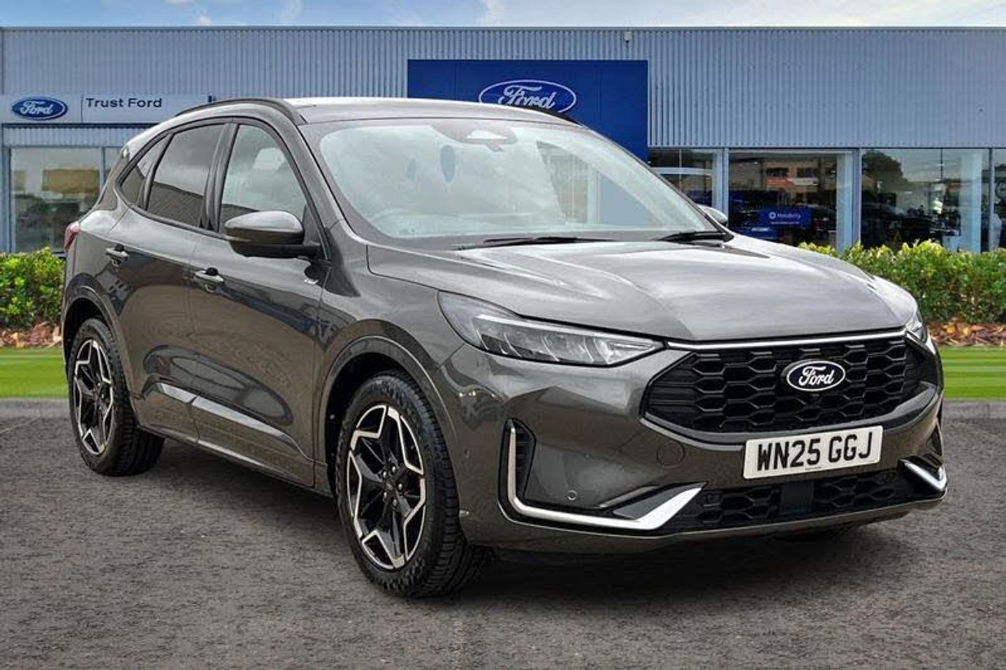 12.3 digital colour instrument cluster, 360 degree view camera, Cross traffic alert with active braking, e-Call (emergency call), Ford easy fuel, Ford SYNC 4 Navigation with 13 touchscreen, DAB radio, emergency assistance, Andriod Auto/Apple CarPlay, 5G modem & Ford Pass connect, Front and rear parking sensors, Hands free power tailgate, Lane keeping aid with lane departure warning, Power assist steering, Selectable drive modes, Service interval indicator, Auto headlamps with high and low beam, Black roof rails, Body colour bumpers, Front LED fog lamps, Large rear spoiler, LED daytime running lights, LED rear lights, LED third brake light, Pop out door edge protectors, Power front/rear windows with global close, Power heated folding door mirrors with puddle lights, memory function and camera, Power opening panoramic roof, Quickclear heated windscreen, Rain sensing wipers, Rear privacy glass, Rear side wing doors, Rear wiper, ST-Line body styling kit, 2nd row sliding seats, Electronic automatic temperature control (EATC), Front and rear head restraints, Partial premium touch sensico upholstery, Rear centre head restraint, Single front passenger seat, Sports seats, 3x3 point rear seatbelts, Airbags - front driver/passenger, front and rear curtain, Drivers knee airbag, Dynamic brake support, Electronic stability control (ESC) and ABS, Evasive steering assist, Ford MyKey Gen 2 safety system, Manual child proof rear door locks, Pre collision assist with autonomous emergency braking, Rear seat Occupancy alert, Red brake calipers, Tyre pressure monitoring system