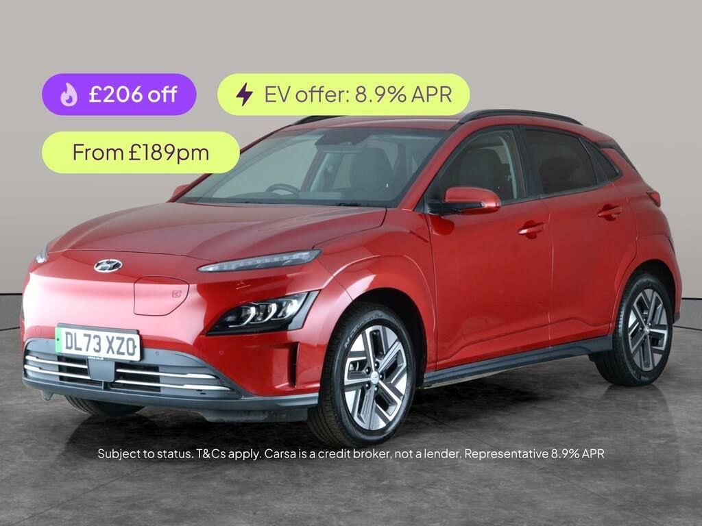 Experience the stylish Hyundai Kona Electric with a vibrant red finish and plenty of premium features. Enjoy the comfort of heated leather seats and a heated steering wheel, while the advanced keyless entry makes every drive seamless. Stay connected with Apple CarPlay, Bluetooth audio streaming, and built-in sat nav. Safety comes first with LED headlights, a reversing camera, blind spot assist, and lane departure warning. Enjoy smooth journeys in this impressive Kona ready to electrify your daily drives. 1 service recorded, last serviced on 15/07/2025 at 10,445 miles. MOT to 30/11/2026. Visit our website for service history, online valuation, full vehicle specification plus multiple images. This vehicle is VAT qualifying. Any feature/option specified here is from 3rd party data. We cannot guarantee the accuracy of any specification supplied by a 3rd party. We recommend that you physically check the specification of the vehicle on site prior to purchase. This information does not form part of the buying contract. Terms & Conditions apply. We have over 2,000 cars available from our 10 national branches, check our website to see all our stock. Our Trustpilot rating is 4.4/5 with over 9,000 reviews.