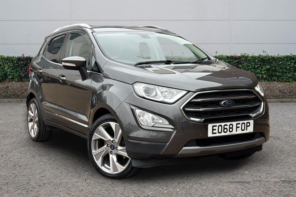 B and O PLAY In-Car Audio Premium Sound System, 18in Alloy Wheels - Flash Grey Machined Finish, Rear Privacy Glass, Lux Pack, Comfort Pack, Salerno Leather - Ebony, Power Opening Sunroof, 17in Alloy Wheels - 10 Spoke Flash Grey Machined, Adjustable Boot Load Floor, Air Conditioning - Electronic Automatic Temperature Control - EATC, Airbags - Curtain, Airbags - Driver and Front Passenger, Airbags - Drivers Knee, Airbags - Front Passenger De-Activation Switch, Alarm - Thatcham Category 1 with Volume Sensing and Perimeter, Ambient Lighting - Instrument Panel and Footwell, Analogue Instrument Cluster, Anti-Lock Braking System - ABS with Electronic Stability Control - ESC, Auto-Dimming Electrochromic Rear-View Mirror, Automatic Headlights, Centre Console Cup Holder with Chrome Accent, Centre Console with Covered Bin and Sliding Armrest, Child Locks, Chrome Headlight Bezel, Courtesy Light - Front with Two Map Lights, Courtesy Light - Rear, Cruise Control, Door Frame Beltline - Chrome, Door Handles - Body Colour, Door Mirrors - Body Colour Housing, Door Mirrors - Power-Foldable Heated with Integrated Side Indicator and Puddle Lights, Driver Seat Manual Height- Fore/Aft and Seatback Angle Adjustment and Recliner, Driver Seat Manual Rotary Knob Lumbar Support Adjustment, Driver and Passengers Sun Visor with Covered Vanity Mirror and Ticket Strip on Drivers Side, Drivers Stowage Glovebox, EPAS - Electric Power Assisted Steering, ESP - Electronic Stability Programme with Hill Launch Assist, Emergency Assistance, Engine Immobiliser, Ford Easy Fuel - Capless Refuelling System, Ford SYNC 3 Navigation with 8in Touchscreen, Front Fog Lights and Turn Indication Light Bezel - Body Colour, Front Fog Lights with Combined Turn Indication Light, Front Grille - Chrome, Front Seat - Passenger Manual - Fore-Aft and Recline Adjustment, Front Seat - Under Passenger Seat Stowage, Front Seats - 2-Way Head Restraint Up-Down, Front Seats - 3 Point Seat Belts with Load Limiter and Seatbelt Height Adjust, Front Seats - Seat-Back Map Pockets, Front Suspension - Independent with MacPherson Struts and Anti-Roll Bar, Front and Rear Bumper - Body Colour with Dark Insert, Front and Rear Floor Mats, Front and Rear Folding Grab Handles, Front and Rear Power Points - 12V, Full Length Overhead Console with Sunglasses Holder, Gear Shift Indicator, Gearshift Knob - Black Insert and Chrome-Finish Ring, Glovebox with Cool Bin - Lid and Illumination, Halogen Rear Lights, Handbrake Grip - Leather-Trimmed, Headlights - Courtesy Delay, Headlights - Levelling Control, Headlights - Projector Beam Headlight with LED Daytime Running Lights, Height Lumbar Adjustment on Drivers Seat, High Mounted Brake Light, IPS - Intelligent Protection System, Keyless Start with Ford Power Start Button, Leather Handbrake and Gearknob, Load Compartment - Lights, Load Compartment Carpet, Load Compartment Side Trim Incorporating Shopping Hooks, Lower Body Side - Door Claddings - Black with Chrome Insert, Manual Parking Brake, MyKey, Power Front and Rear Windows with Global Opening-Closing, Quickclear Heated Front Windscreen with Heated Washer Jets, Rake Adjustable Rear Seat, Rear Seat - 60-40 Split Folding Seats, Rear Seats - 2-Way Head Restraint Up-Down, Rear Seats - Centre Head Restraint - Up-Down, Rear Seats - Retractable Rear Seat Belt - 3-Point All Positions, Rear Suspension - Semi-Independent Twist Beam with Twin Gas and Oil-Filled Shock Absorbers, Rear View Camera Pack, Remote Central Locking, Rocker Panel and Side Cladding - Black, Seat Belt Reminder System - Drivers and Front Passengers, Seats - ISOFIX Mounting Provision for Child Seats - Outer Seats Only, Side Impact Door Beams, Silver Roof Rails, Soft Instrument Panel Cover, Steering Column - Rake and Reach Adjustment, Steering Wheel - Leather-Trimmed with Chrome Inserts, Suspension - Front Stabiliser Bar, Tailgate Handle - Chrome, Threshold Plates - Front - Stainless Steel with EcoSport Logo, Tie-Down Hooks, Trip Computer, Tyre Inflator Kit, Tyre Pressure Monitoring System, Tyre Repair Kit, Wipers - Front - Automatic with Rain Sensor, Wipers - Rear Wash-Wipe - Intermittent