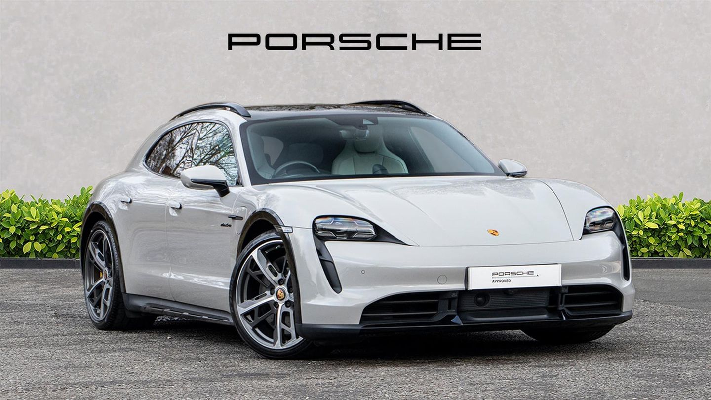 21" Cross Turismo Design Wheels,Fixed Panoramic Roof,BOSE Surround Sound System,Sport Chrono Package,Performance Battery Plus,Adaptive Air Suspension,Porsche Active Suspension Management,Rear-Axle Steering with Power Steering Plus,ParkAssist with Surround View,Passenger Display,Smartphone Compartment with Wireless Charging,Adaptive Cruise Control,Porsche Vehicle Tracking System Plus,Matrix LED Headlights with PDLS Plus,Automatically Dimming Mirrors,Electrically Folding Mirrors,Apple CarPlay,18-Way Adaptive Sports Seats with Memory Package,Front & Rear Heated Seats,Porsche Electric Sport Sound,Accent Package in Darksilver,Porsche Ceramic Composite Brakes with Calipers in Yellow,Wheel Centres Set with Full-Colour Porsche Crest,Roof Rails in Black Aluminium,Side Window Trims in High-Gloss Black,Interior Package in Matt Carbon,Storage Package,Illuminated Door Sill Guards in Matt Carbon,Roof Lining in Race-Tex,Privacy Glass,Two-Year Porsche Approved Warranty,Video Presentation Available,VAT Qualifying Vehicle