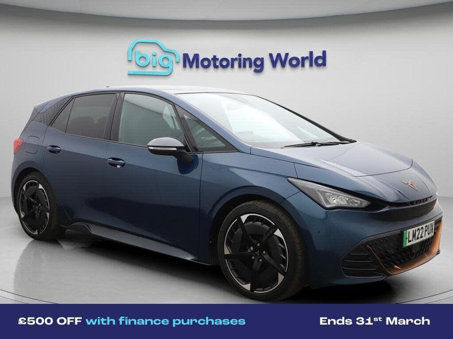 £500 towards your finance depo-Our CUPRA Born is finished in Blue. Specification includes a range of fantastic features including £500 towards your finance deposit, Head up Display, 20'' Alloy Wheels, Digital Cockpit, Massage Function Seats, Lane Assist, Heated Seats, Ambient Lighting, 2 Zone Climate, Climate Control Specification information is supplied by CAPHPI and may vary to the actual car. This data does not form any part of a buying contact. Please check specification prior to purchase in-store. The MOT is valid until February 2027, visit bigmotoringworld.co.uk for more photos, a 360 tour, service history and a free HPI report.Were BIG on peace of mind and this Blue CUPRA Born has completed our comprehensive 200 point inspection and passed all checks. Its ready for you to drive away with immediate collection in-store. We include a 90-day warranty as standard plus an option to extend for up to 3 years.Reserve this car exclusively for you, safely and securely at bigmotoringworld.co.uk, with a fully refundable £99 deposit. Test drive before you buy, with no commitment, no hassle and a completely haggle free experience. Still searching and want to see thousands more cars? We are BIG on choice with over 8000 cars to choose from.Visit our award winning web site bigmotoringworld.co.uk.Were Big Motoring World and were BIG on what matters to you.