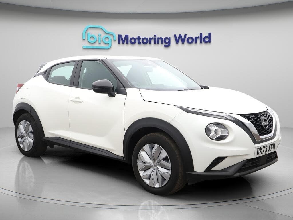 17'' Alloy Wheels,Apple CarPlay-Our Nissan Juke is finished in White. Specification includes a range of fantastic features including 17'' Alloy Wheels, Apple CarPlay, Rear View Camera, Bluetooth, Ambient Lighting, Cruise Control, DAB Radio , Touch Screen Control, LED daytime running lights, Multi Function Steering Wheel Specification information is supplied by CAPHPI and may vary to the actual car. This data does not form any part of a buying contact. Please check specification prior to purchase in-store. The MOT is valid until August 2026, visit bigmotoringworld.co.uk for more photos, a 360 tour, service history and a free HPI report.Were BIG on peace of mind and this White Nissan Juke has completed our comprehensive 200 point inspection and passed all checks. Its ready for you to drive away with immediate collection in-store. We include a 90-day warranty as standard plus an option to extend for up to 3 years.Reserve this car exclusively for you, safely and securely at bigmotoringworld.co.uk, with a fully refundable £99 deposit. Test drive before you buy, with no commitment, no hassle and a completely haggle free experience. Still searching and want to see thousands more cars? We are BIG on choice with over 8000 cars to choose from.Visit our award winning web site bigmotoringworld.co.uk.Were Big Motoring World and were BIG on what matters to you.