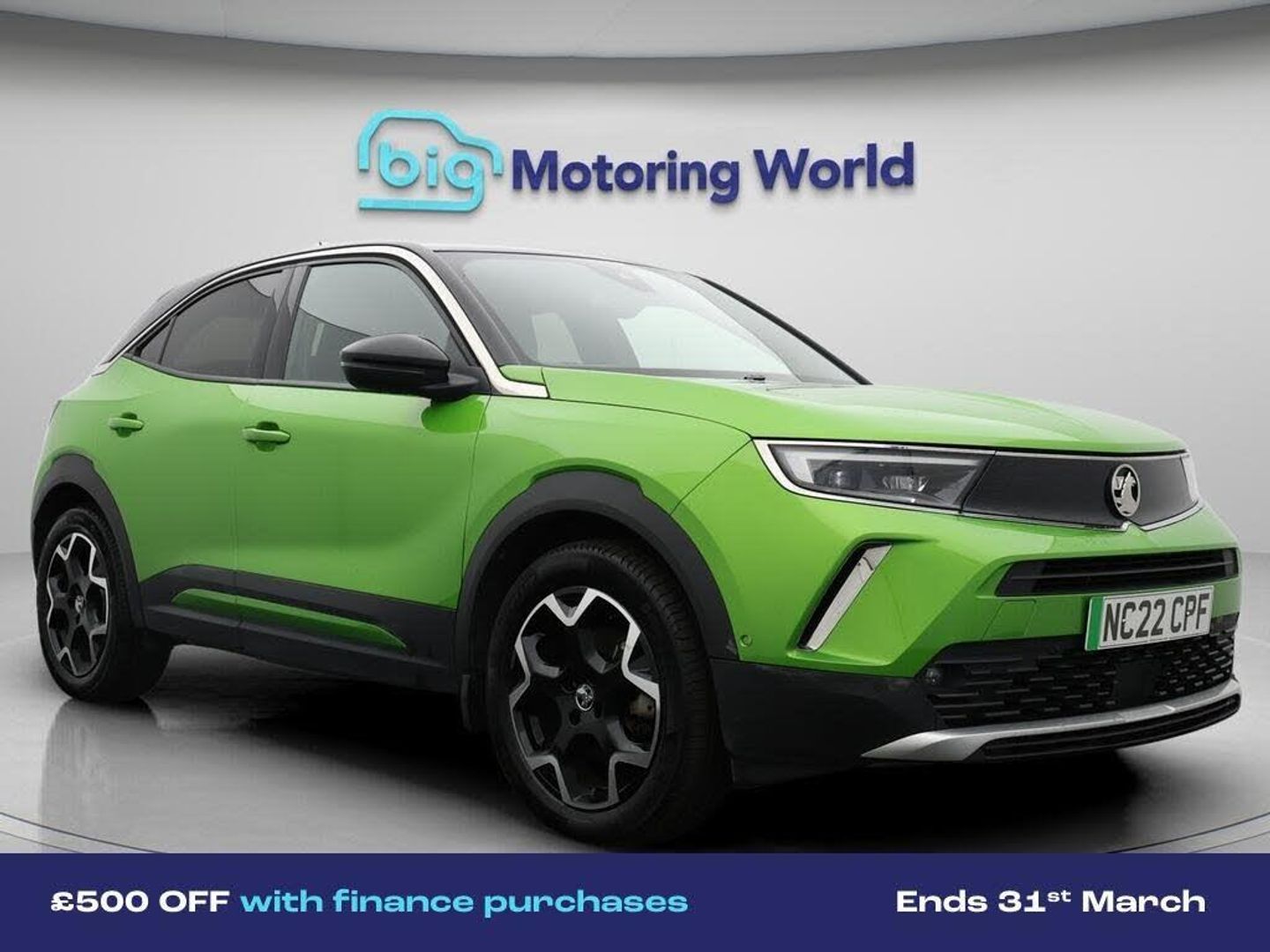 £500 towards your finance depo-Our Vauxhall Mokka Electric comes with optional extras worth £1,300. Specification includes a range of fantastic features including £500 towards your finance deposit, 18'' alloy wheels, Leather Seats, Adaptive Cruise Control, Massage Function Seats, Satellite Navigation, Privacy Glass, Heated Seats, Heated Steering Wheel, Bluetooth Specification information is supplied by CAPHPI and may vary to the actual car. This data does not form any part of a buying contact. Please check specification prior to purchase in-store. The MOT is valid until August 2026, visit bigmotoringworld.co.uk for more photos, a 360 tour, service history and a free HPI report.Were BIG on peace of mind and this Green Vauxhall Mokka Electric has completed our comprehensive 200 point inspection and passed all checks. Its ready for you to drive away with immediate collection in-store. We include a 90-day warranty as standard plus an option to extend for up to 3 years.Reserve this car exclusively for you, safely and securely at bigmotoringworld.co.uk, with a fully refundable £99 deposit. Test drive before you buy, with no commitment, no hassle and a completely haggle free experience. Still searching and want to see thousands more cars? We are BIG on choice with over 8000 cars to choose from.Visit our award winning web site bigmotoringworld.co.uk.Were Big Motoring World and were BIG on what matters to you.