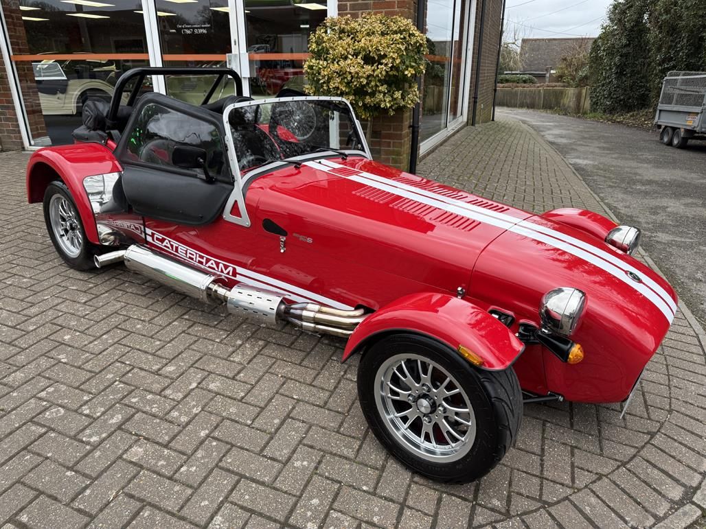 SOLD, SIMILAR REQUIRED ! Exocet Red with White twin stripe decal and Caterham Script with Black leather, 152 bhp Ford Sigma 1.6 engine with 5-speed manual gearbox, Series 5 SV chassis model, Equipped with Limited-slip Differential, S specification, Start button, Adjustable Caterham embossed leather seats with removable headrests, Leather centre tunnel, S badged key, S badged gearstick, Quick release Momo steering wheel, Carpets, Rubber Caterham mats, 12V charging socket, Heater, Adjustable seats, Driver and passenger lowered floors, Heater, Full windscreen, Heated screen, Full weather equipment, Full hood & Side screens with armrests, Half doors with armrests, Full tonneau cover, 7 hood bag, Removable wind deflectors, Black 7 grille, Boot cover, De Dion Rear Suspension, LED headlights, Polished exhaust system, 13 inch Silver Apollo alloys, Avon ZZS tyres, Spare wheel and carrier, Originally supplied by Caterham Cars Ltd, Complete with Caterham Cars Ltd Order confirmation/spec sheet, Original owners book pack and Spare keys, Full service history – Just been serviced, Desirable Factory built example, The most sought-after Caterham Seven the 310 is highly favoured due to its ideal power-to-weight ratio (152bhp to 540kg), this example also being the SV wide chassis variant (110mm wider, 250mm longer, Larger fuel tank) with desirable lowered floors for leg room, This stunning high specification 7 has covered a mere 2,500 miles from new.