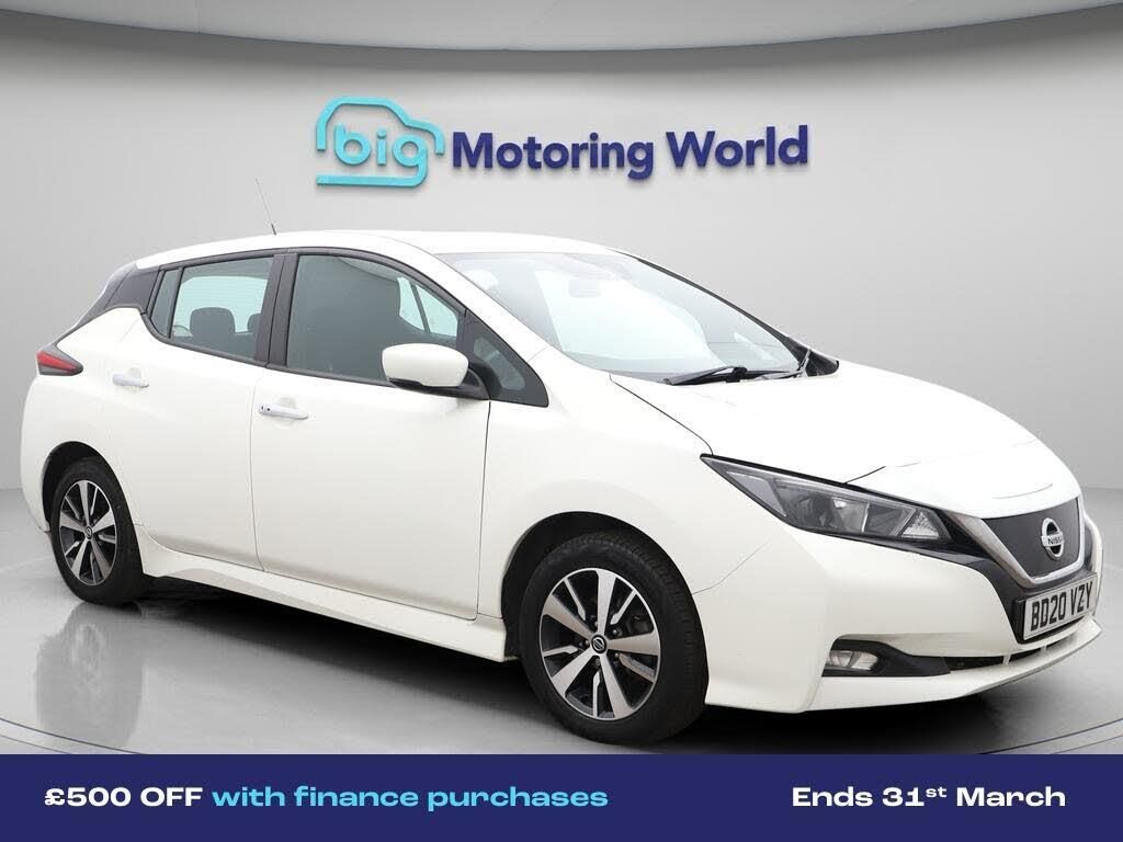 £500 towards your finance depo-Our Nissan Leaf is finished in White. Specification includes a range of fantastic features including £500 towards your finance deposit, Rear View Camera, Voice Control, Touch Screen Control, Rain Sensing Wipers, Front fog lights, Push Button Start, Split Rear Seats, Central Locking , Power Steering Specification information is supplied by CAPHPI and may vary to the actual car. This data does not form any part of a buying contact. Please check specification prior to purchase in-store. The MOT is valid until September 2026, visit bigmotoringworld.co.uk for more photos, a 360 tour, service history and a free HPI report.Were BIG on peace of mind and this White Nissan Leaf has completed our comprehensive 200 point inspection and passed all checks. Its ready for you to drive away with immediate collection in-store. We include a 90-day warranty as standard plus an option to extend for up to 3 years.Reserve this car exclusively for you, safely and securely at bigmotoringworld.co.uk, with a fully refundable £99 deposit. Test drive before you buy, with no commitment, no hassle and a completely haggle free experience. Still searching and want to see thousands more cars? We are BIG on choice with over 8000 cars to choose from.Visit our award winning web site bigmotoringworld.co.uk.Were Big Motoring World and were BIG on what matters to you.