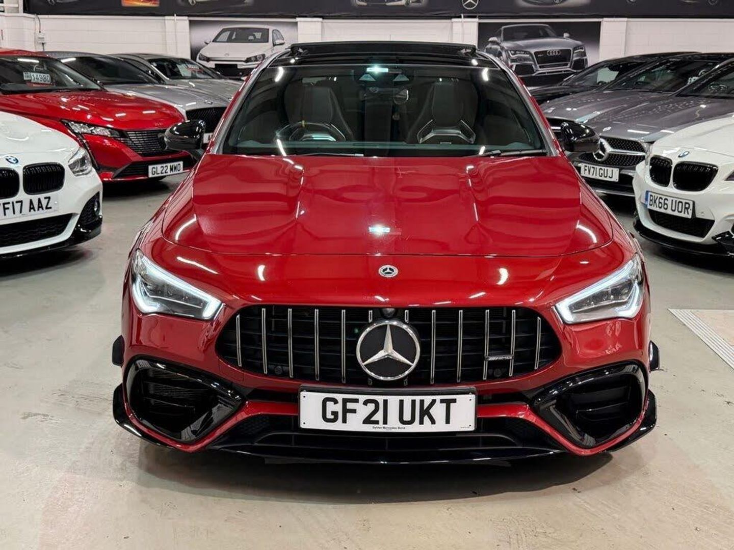 19in Alloy Wheels - AMG Forged Cross-Spoke Design, 3-Stage Electronic Stability Programme - ESP, ABS - Anti-Lock Braking System with BAS - Brake Assist, AMG Aerodynamics Package, AMG CLA 45 S Bodystyling, AMG Centre Console - Decidedly Sporty with Raised Front Section, AMG Centre Console is Finished with Trim in Silver Chrome, AMG Drivers Package, AMG Dynamic Select with a Choice of Driving Modes - Slippery-Comfort-Sport-Sport Plus-Individual-Race, AMG High-Performance Braking System with Red Painted Brake Calipers, AMG Leather Package, AMG Menu with Sporty Additional Information, AMG Night Package, AMG Performance 4MATIC Plus with Torque Control, AMG Performance Seats, AMG Specific Radiator Grille in High-Gloss Chrome with AMG Lettering, AMG Specific Radiator Grille with Wider Lower Contour and 12 Vertical Louvres, AMG Speed-Sensitive Steering with Two Sets of Steering Characteristics, AMG Sport Pedals in Brushed Stainless Steel with Rubber Studs, AMG Steering Wheel Buttons, ATTENTION Assist, Active Bonnet - Pedestrian Safety Measure which Detects an Impact and Raises Bonnet by 65mm, Active Brake Assist, Active Lane Keeping Assist, Adaptive Brake Lights, Air Conditioning - Air Vents with Surround in Silver Chrome, Air Conditioning - THERMOTRONIC Luxury Automatic Climate Control - Two-Zone with Display, Airbag - Kneebag for Driver, Airbags - Dual-Stage - Driver and Front Passenger, Airbags - Head and Sidebags - Driver and Front Passenger, Airbags - Windowbags for Driver and Front Passenger, Alarm System with Immobiliser and Interior Protection - Thatcham Category 1, Automatic Child Seat Recognition Sensor - Pressure Sensor, Beltline Strips - High Gloss Black, Blind Spot Assist, Bluetooth Connection, Bonnet with Power Domes, Brake-Pad Wear Warning Indicator, Braking - Adaptive Brake Assist with HOLD Function and Hill Start Assist, Bumpers - Body Coloured, Car Wash Mode, Centre Armrest - Front with Stowage, Childproof Locks - Manually Operated for Rear Doors and Electrically Operated for Rear Power Windows, Chrome Weather Strip, Crash-Responsive Emergency Lighting, Cruise Control with Limiter, DAB Digital Radio Tuner, Diffuser with Two Vertical Twin Fins - Spoiler Lip in Vehicle Colour, Direct-Steer System, Door Handles - Body Coloured, Door Mirrors - Electrically Adjustable and Heated with Integrated LED Indicators, Door Sills - Illuminated Front Door Sills with Changeable Cover, ESP - Electronic Stability Programme with ASR - Acceleration Skid Control, ESP Curve Dynamic Assist, Electric Parking Brake, Exhaust System - AMG Real Performance Sound, Exhaust System - Two Round Twin Tailpipe Trim Elements, Exit Warning Function, First Aid Kit and Warning Triangle, Floor Mats with Stitched AMG Lettering, Glass - Rear Windscreen - Heated with Timer Control, Headlamp Assist - Automatic Headlamp Activation, Heated Front Seats, Hey Mercedes - Voice Activation, High Level Third Brake Light - LED, ISOFIX and Top-Tether Child Seat Fixing Points in Rear - Two Outer Seats, Instrument Cluster - Fluid Level Warning Indicator for Fuel - Oil - Coolant and Washer Fluid, Instrument Cluster - Outside Temperature Display, Instrument Cluster - Service Indicator ASSIST, Instrument Cluster - Trip Computer in Multi-Function Display with Current Fuel Consumption Indicator, Instrument Display - 10.25in Digital Display, Interior 64-Colour Ambient Lighting, Interior Lighting - Mirror with Reading Lamps in Black - Frameless, KEYLESS-GO Package, KEYLESS-GO Starting Function, LED Tail Lamps, Lamp Failure Indicator, Lane Keeping Assist, Light and Sight Package, Live Traffic and Map Updates, MBUX Multimedia System, MBUX with Hard-Disk Navigation, MULTIBEAM LED Headlamps with Adaptive Highbeam Assist, Media Display - 10.25-inch with Touchscreen with AMG Specific Content, Mercedes Me - Remote Services, Mercedes Me Connect - Standard Services, Mirror Package, Multi-Contour Seat Package, Owners Manual - English, Panoramic Roof, Parking Package, Pre-Installation for Mercedes-Benz Link, Pre-Installation for Private Car Share, Privacy Glass, Radio Aerial Integrated into Windshields Front and Rear, Rain-Sensing Windscreen Wipers with Two Sensitivity Settings, Rear Armrest with Two Cup Holders, Rear Axle - Multi-Link, Rear Fog Lamp, Remote Central Locking and Crash Sensor with Emergency Opening Function, Roof Lining - Black, Seat Belt Reminder - Front and Rear, Seat Belts - Black, Seat Belts - Rear Three-Point - 3, Seat Comfort Package, Seat Occupancy Sensor - Front Passenger Seat, Seats - AMG Performance High End Package, Seats - Rear Seat Backrests - Split Folding 40-20-40, Smartphone Integration including Apple CarPlay and Android Auto, Speed Limit Assist, Spoiler Lip in Vehicle Colour, Steering Column - Manually Adjustable for Height and Reach, Steering Wheel - AMG Performance Steering Wheel in Nappa Leather - DINAMICA Microfiber, Steering Wheel - Silver-Coloured Aluminium Gear Shift Paddles, Storage Compartment in Centre Console with Retractable Cover, Summer Tyres, Sun Visors with Illuminated Vanity Mirrors, Suspension with Adaptive Damping System, TIREFIT Tyre-Sealant Kit, Touchpad on Centre Console, Traffic Sign Assist, Trim - Aluminium AMG Design Black - Silver, Twin Cup Holders in Front, Tyre Pressure Monitoring System, URBAN GUARD Vehicle Protection with Anti-Theft Alarm System, USB - Type C - Ports - Two in Stowage Compartment and One in Front of Centre Console, Wheel Arches - Flared AMG Wings with TURBO 4MATIC+ Lettering, Wider AMG Side Skirts, Window Line - High-Gloss Black, Windows - Electric Windows - 4