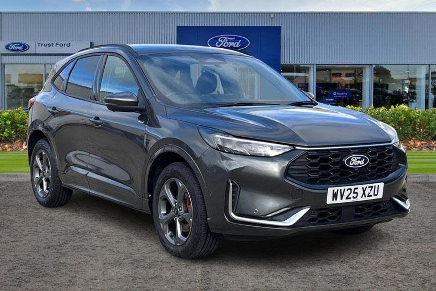 12.3 digital colour instrument cluster, 360 degree view camera, Clear exit assist, Cross traffic alert with active braking, e-Call (emergency call), Ford easy fuel, Ford SYNC 4 Navigation with 13 touchscreen, DAB radio, emergency assistance, Andriod Auto/Apple CarPlay, 5G modem & Ford Pass connect, Front and rear parking sensors, Hands free power tailgate, Lane centering assist, Lane keeping aid with lane departure warning, Power assist steering, Selectable drive modes, Service interval indicator, Auto headlamps with high and low beam, Black roof rails, Body colour bumpers, Front LED fog lamps, Large rear spoiler, LED daytime running lights, LED rear lights, LED third brake light, Pop out door edge protectors, Power front/rear windows with global close, Power heated folding door mirrors with puddle lights, memory function and camera, Quickclear heated windscreen, Rain sensing wipers, Rear privacy glass, Rear side wing doors, Rear wiper, ST-Line body styling kit, 2nd row sliding seats, Electronic automatic temperature control (EATC), Front and rear head restraints, Partial premium touch sensico upholstery, Rear centre head restraint, Single front passenger seat, Sports seats, 3x3 point rear seatbelts, Airbags - front driver/passenger, front and rear curtain, Drivers knee airbag, Dynamic brake support, Electronic stability control (ESC) and ABS, Evasive steering assist, Ford MyKey Gen 2 safety system, Manual child proof rear door locks, Pre collision assist with autonomous emergency braking, Rear seat Occupancy alert, Red brake calipers, Tyre pressure monitoring system