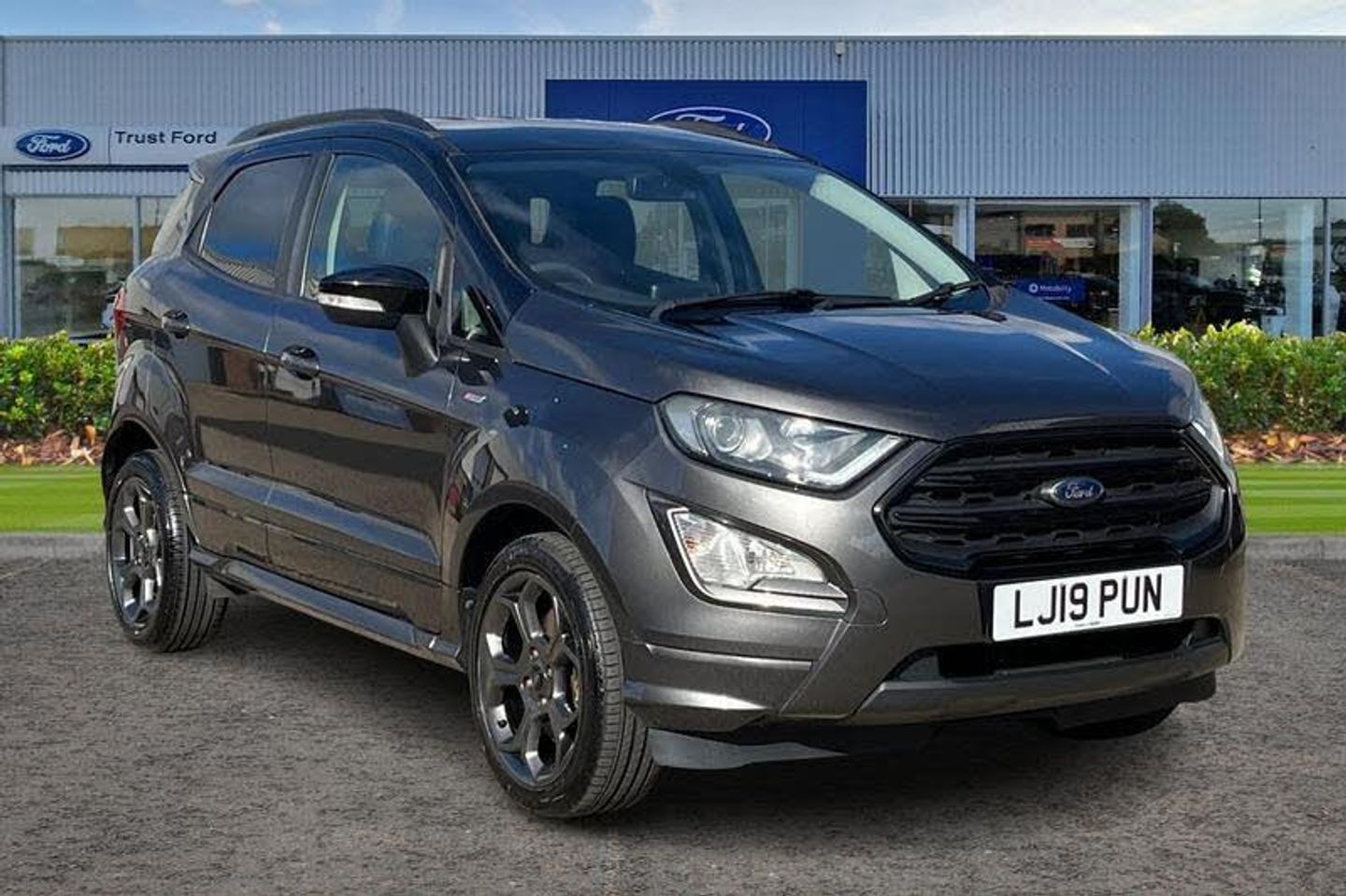 Cruise control, Easy fuel capless refuelling system, PAS, SYNC 3 nav system with DAB radio, 8 screen, voice control, emergency assistance, Apple car play/Android auto, 2x USB, Ford pass connect, Trip computer, 'Quickclear' heated windscreen/heated washer jets, Auto dimming rear view mirror, Automatic headlights, Black roof rails, Body colour door handles, Body coloured bumpers, Electrically adjustable and heated door mirrors, Front door threshold plates with ST-Line logo, Front fog lights, Headlight levelling control, Large rear spoiler, Power foldable door mirrors with puddle lights, Power front and rear windows with global opening/closing, Rain sensing front wipers, Rear wiper, ST-Line body styling kit, ST-Line front grille, 12V socket in front and rear, 60/40 split rear seats, 7 shade adjustable ambient lighting, Centre console with sliding front armrest, Cooled glovebox, Courtesy lights with map reading light, Driver seat height/lumbar adjust, Driver's side glovebox, Driver/passenger sunvisors and lidded vanity mirrors, EATC - Electronic Auto Temperature control, Folding grab handles, Front head restraints, Front seat back map pockets, Front/rear floor mats, Illuminated glovebox, Illuminated luggage compartment, Isofix system on outer rear seats, Leather steering wheel/gearshift/handbrake lever with red stitching, Luggage compartment carpet, Overhead console with sunglasses holder, Partial leather upholstery, Rake adjustable rear seats, Reach + rake adjustable steering column, Rear headrests, Stainless steel sports pedals, Steering wheel with chrome inserts, Storage drawers under front seats, Tie down hooks, Variable boot floor, 3x3 point rear seatbelts, ABS, Child locks on rear doors, Curtain airbags, Driver airbag, Drivers knee airbag, Electronic Stability Programme with hill launch assist, Emergency brake assist, Front passenger airbag deactivation, Front side airbags, Passenger airbag, Seatbelt reminder for driver and front passenger, Traction control, Tyre pressure monitoring system