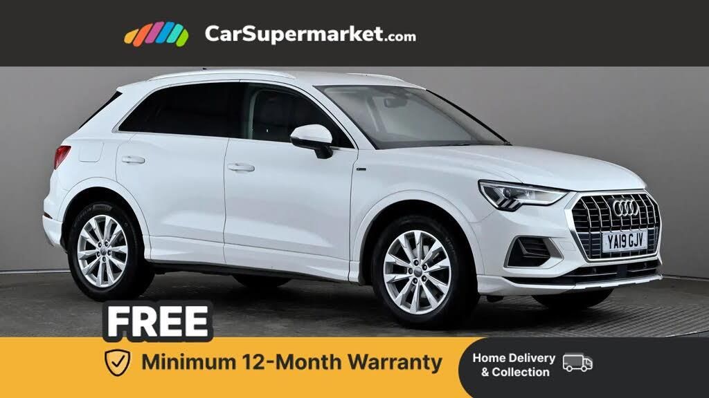 Audi connect safety and service (e-call),Audi drive select,Audi lane departure warning,Audi side assist,Audi smartphone interface,Bluetooth interface,Camera based traffic sign recognition,MMI navigation plus with MMI touch,Power opening/closing tailgate,Progressive steering,Rear parking sensors,Service interval indicator,Stop/start system,Voice control system,Standard suspension,1 x USB type C and 1 USB type A charging points,6 speakers,DAB digital radio module,Acoustic windscreen,Aluminium roof rails,Aluminium window trim,Auto dimming rear view mirror,Body coloured bumpers,Electrically adjustable and heated door mirrors with integrated LED side indicators,Front and rear electric windows,Front fog lights,Front side air inlets in matt selenite silver,Front spoiler in matt selenite silver,Grille vertical bars in aluminium silver/Matt,High gloss black finish B and C pillars,LED headlights with LED daytime running lights and dynamic rear indicator,LED rear lights,Rain and light sensors,Rear diffuser strip in selenite silver,Titanium black radiator grille,12V socket in rear centre console,40:20:40 split folding rear bench seat,Adjustable rear seat bench/backrest,Aluminium door sill trims,Dual zone climate control,Front and rear headrests,Front centre armrest with storage compartment and angle adjustment,ISOFIX child seat mounting and Top Tether with front passenger airbag deactivation,Lunar silver cloth headlining,Manual front seats with height adjustment,Stainless steel luggage compartment sill finisher,Non smoking pack - Q3,3x3 point rear seatbelts,6 airbags - Driver, front passenger, curtain and side windows,Audi pre-sense front with pedestrain and cyclist recognition,Electrically operated child locks on rear doors,Electromechanical parking brake,Electronic stabilisation control including ABS, ASR and EDL,Hill hold assist,Pre sense basic,Seatbelt monitoring,Tyre pressure warning,Warning triangle and first aid kit,Anti theft alarm,Anti theft wheel bolts,Remote central locking,MMI touch colour display in gloss black with aluminium surround,Tool kit,Tyre repair kit