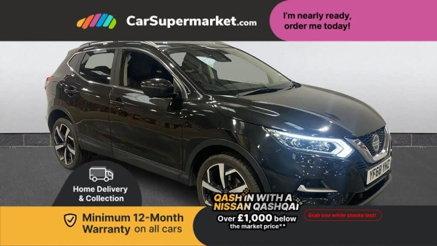Advanced drive assist display 5'' TFT coloured screen,Android Auto,Apple CarPlay preparation,Bluetooth connectivity,Cruise control + speed limiter,Electric speed sensitive power steering,Front parking sensors,Intelligent around view monitor,Intelligent parking assist,Lane departure warning system,Nissan connect evo 7" touchscreen navigation and entertainment system,Normal or sport selectable steering,Outside temperature sensor,Push button starter,Rear parking sensors,Rear view camera,Service interval indicator,Smartphone integration,Stop/start system,Tomtom connected services,Traffic sign recognition,Trip computer,Voice control system,Nissan chassis control (intelligent ride control, intelligent trace control, intelligent engine brake),AM/FM radio, CD audio system,Aux-in socket,Bose premium 8 speaker system,DAB Digital radio,Steering wheel mounted audio controls,USB port,Anti dazzle rear view mirror,Auto wipers,Body colour bumpers,Body coloured door handles,Body coloured door mirrors,Chrome window surround,Daytime running lights dip function when turn signal applied,Electric folding door mirrors,Electric front and rear windows with one touch illuminated window controls,Electric front/rear windows,Electrically adjustable door mirrors,Front fog lights,Heated door mirrors,High beam assist,Intelligent auto headlights,LED indicators in door mirrors,Matt silver roof rails,Panoramic sunroof with one touch shade,Privacy glass,Rear roof spoiler,Rear wiper with reverse link,Shark fin antenna,Underbody vortex generators,2 X front 12v power sockets,3 height adjustable rear headrests,60/40 split folding rear seat,Ambient lighting in centre console,Boot lighting,Centre console storage box/armrest,Chrome interior door handles,Configurable luggage board system,Dual zone climate control,Electrically adjustable driver seat,Front and rear door pockets with bottle holders,Front and rear seat belt pre-tensioners with load limiters,Height adjustable front headrests,Individual rear seat reading lights,Leather D shaped steering wheel,Leather gear lever,Leather knee pad,Manual height adjustable front passenger seat,Manual lumbar support on driver seat,Manual lumbar support on passenger seat,Monoform front seats with plastic backboard,One touch electric shade,Parcel shelf stow function under luggage board,Part leather upholstery,Pollen filter,Rear armrest with 2 cupholders,Synthetic leather wrapped door handle with contrasting stitching,Tilt/telescopic adjustable steering wheel,Heat package - Qashqai,LED pack - Qashqai,Safety shield plus pack - Qashqai,6 airbags - Driver, front passenger, curtain and side airbags,ABS, ESP, EBD and brake assist,Auto hold function,Child locks on rear doors,Electronic parking brake,Front and rear seat belt warning,Front passenger airbag deactivation,Height adjustable front seatbelts,Hill start assist,Intelligent emergency braking with pedestrian recognition,Three 3 point rear seatbelts,Tyre pressure monitoring system,Anti-theft immobiliser,Intelligent Key,Remote central locking,Thatcham Cat.1 alarm,Carbon graphite dash trim,Tyre puncture repair kit