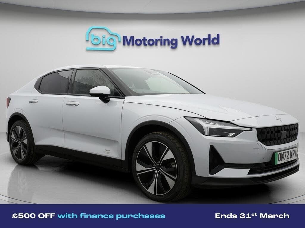 £500 towards your finance depo-Our Polestar Polestar 2 is finished in Silver. Specification includes a range of fantastic features including £500 towards your finance deposit, Dynamic Chassis Control, Electric Seats, Heated Seats, Rear View Camera, Internet, Bluetooth, Adaptive LED Headlights, 2 Zone Climate, Cruise Control Specification information is supplied by CAPHPI and may vary to the actual car. This data does not form any part of a buying contact. Please check specification prior to purchase in-store. The MOT is valid until February 2027, visit bigmotoringworld.co.uk for more photos, a 360 tour, service history and a free HPI report.Were BIG on peace of mind and this Silver Polestar Polestar 2 has completed our comprehensive 200 point inspection and passed all checks. Its ready for you to drive away with immediate collection in-store. We include a 90-day warranty as standard plus an option to extend for up to 3 years.Reserve this car exclusively for you, safely and securely at bigmotoringworld.co.uk, with a fully refundable £99 deposit. Test drive before you buy, with no commitment, no hassle and a completely haggle free experience. Still searching and want to see thousands more cars? We are BIG on choice with over 8000 cars to choose from.Visit our award winning web site bigmotoringworld.co.uk.Were Big Motoring World and were BIG on what matters to you.