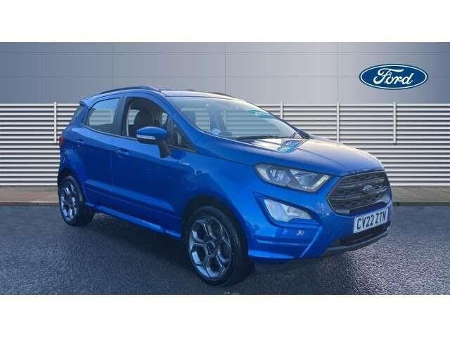 blue interior.Cruise control, e-Call (emergency call), Easy fuel capless refuelling system, Ford SYNC 3 nav system with DAB radio,8" screen, emergency assistance,Apple car play/Android auto, 2x USB, 6 speakers, Ford pass connect, Intelligent speed limiter, PAS, Rear parking sensors, Rear view camera, Traffic sign recognition, Trip computer, Sports suspension, Steering wheel mounted audio controls, Auto dimming rear view mirror, Automatic front wipers, Automatic headlights, Black roof rails, Body colour door handles, Body coloured bumpers, Chrome lower window surround, Electrically adjustable and heated door mirrors, Front fog lights, Front grille bars and surround in black, Headlight levelling control, Large rear roof spoiler, LED day running lights, LED third brake light, Power front and rear windows, Puddle lights, Quick-clear heated windscreen, Rear side wing doors, Rear wiper, ST Line body styling kit - Black headlamp bezel, front and rear sport bumpers, body colour lower door claddings, 12V socket in front and rear, 3 seat bench in 2nd row, 60/40 split rear seats, Ambient lighting, Centre console with sliding front armrest, Cooled glovebox, Courtesy lights with map reading light, Driver seat height/lumbar adjust, Driver's side glovebox, Driver/passenger sunvisors and lidded vanity mirrors, EATC - Electronic Auto Temperature control, Folding grab handles, Front head restraints, Front seat back map pockets, Illuminated glovebox, Illuminated luggage compartment, Isofix system on outer rear seats, Luggage compartment carpet, Neosuede/Partial sensico leather upholstery, Overhead console with sunglasses holder, Rake adjustable rear seats, Reach + rake adjustable steering column, Rear headrests, Sensico trimmed steering wheel, handbrake and gearshift gaiter with red stitching, Single front passenger seat, ST-Line Front floor mats with red stitching, Stainless steel sports pedals, Storage drawers under front seats, Tie down hooks, Variable boot floor, 3x3 point rear seatbelts, ABS, Autonomous emergency braking, Child locks on rear doors, Curtain airbags, Driver airbag, Drivers knee airbag, Electronic Stability Programme with hill launch assist, Front passenger airbag deactivation, Front side airbags, Passenger airbag, Pre collision assist system with AEB, Seatbelt reminder for driver and front passenger, Traction control, Tyre pressure monitoring system, Immobiliser, MyKey system, Remote central locking, Thatcham 1 volume sensing alarm, Low rolling resistance tyres, Tyre inflation kit,