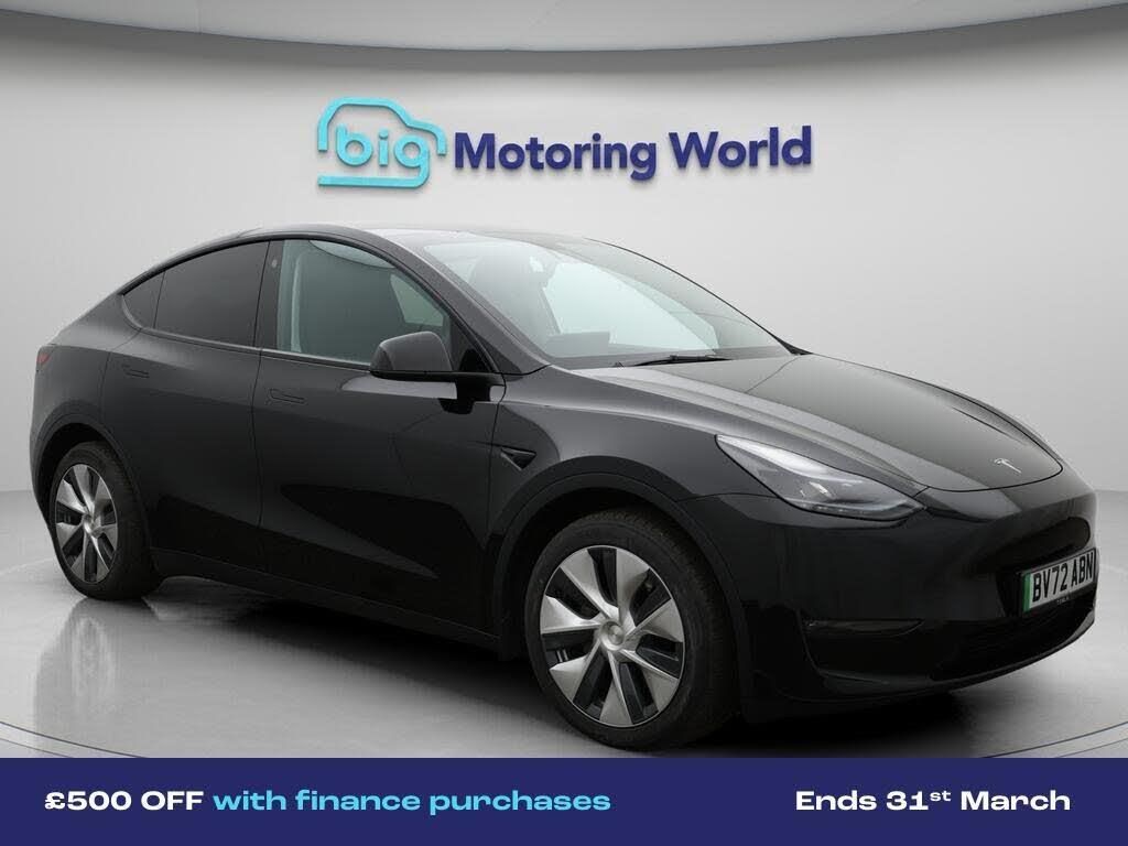 £500 towards your finance depo-Our Tesla Model Y is finished in Black. Specification includes a range of fantastic features including £500 towards your finance deposit, All Wheel Drive, Heated Seats, Wireless Phone Charging, Rear View Camera, Heated Rear Seats, Heated Steering Wheel, Bluetooth, Blind Spot Assist, Ambient Lighting Specification information is supplied by CAPHPI and may vary to the actual car. This data does not form any part of a buying contact. Please check specification prior to purchase in-store. The MOT is valid until September 2026, visit bigmotoringworld.co.uk for more photos, a 360 tour, service history and a free HPI report.Were BIG on peace of mind and this Black Tesla Model Y has completed our comprehensive 200 point inspection and passed all checks. Its ready for you to drive away with immediate collection in-store. We include a 90-day warranty as standard plus an option to extend for up to 3 years.Reserve this car exclusively for you, safely and securely at bigmotoringworld.co.uk, with a fully refundable £99 deposit. Test drive before you buy, with no commitment, no hassle and a completely haggle free experience. Still searching and want to see thousands more cars? We are BIG on choice with over 8000 cars to choose from.Visit our award winning web site bigmotoringworld.co.uk.Were Big Motoring World and were BIG on what matters to you.