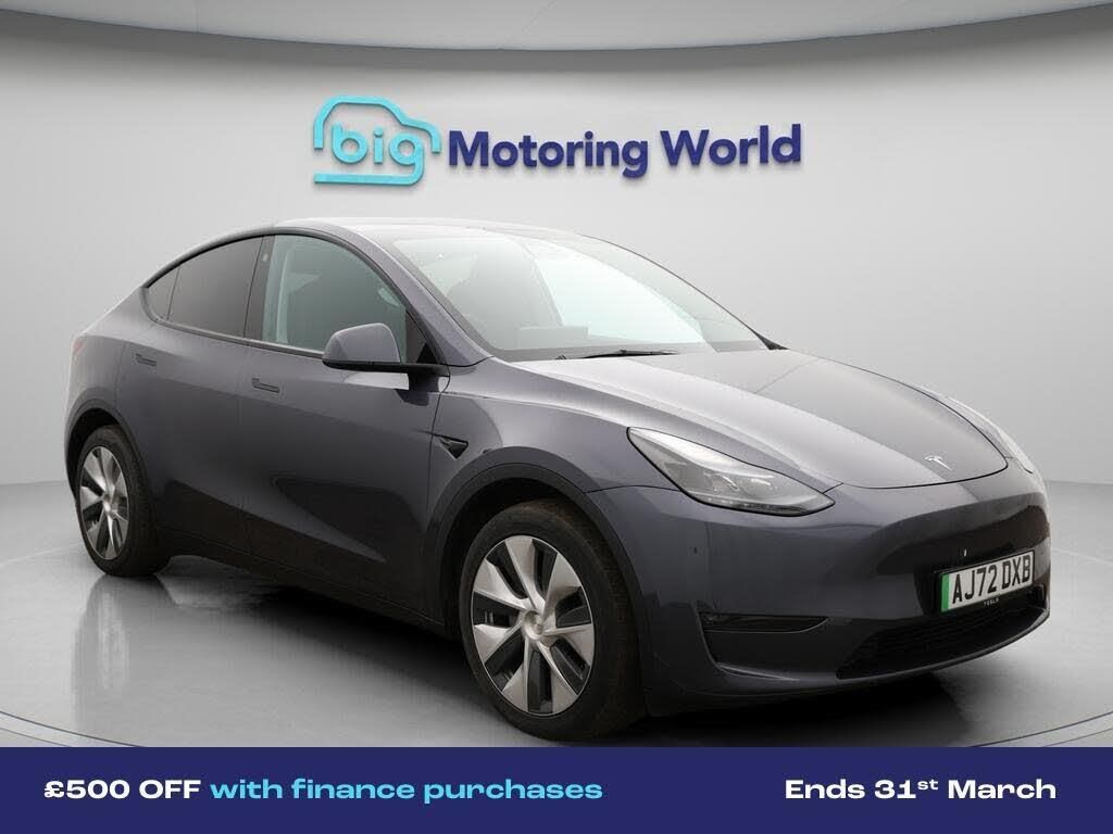 £500 towards your finance depo-Our Tesla Model Y is finished in Grey. Specification includes a range of fantastic features including £500 towards your finance deposit, All Wheel Drive, Heated Seats, Wireless Phone Charging, Rear View Camera, Heated Rear Seats, Heated Steering Wheel, Bluetooth, Blind Spot Assist, Ambient Lighting Specification information is supplied by CAPHPI and may vary to the actual car. This data does not form any part of a buying contact. Please check specification prior to purchase in-store. The MOT is valid until December 2026, visit bigmotoringworld.co.uk for more photos, a 360 tour, service history and a free HPI report.Were BIG on peace of mind and this Grey Tesla Model Y has completed our comprehensive 200 point inspection and passed all checks. Its ready for you to drive away with immediate collection in-store. We include a 90-day warranty as standard plus an option to extend for up to 3 years.Reserve this car exclusively for you, safely and securely at bigmotoringworld.co.uk, with a fully refundable £99 deposit. Test drive before you buy, with no commitment, no hassle and a completely haggle free experience. Still searching and want to see thousands more cars? We are BIG on choice with over 8000 cars to choose from.Visit our award winning web site bigmotoringworld.co.uk.Were Big Motoring World and were BIG on what matters to you.