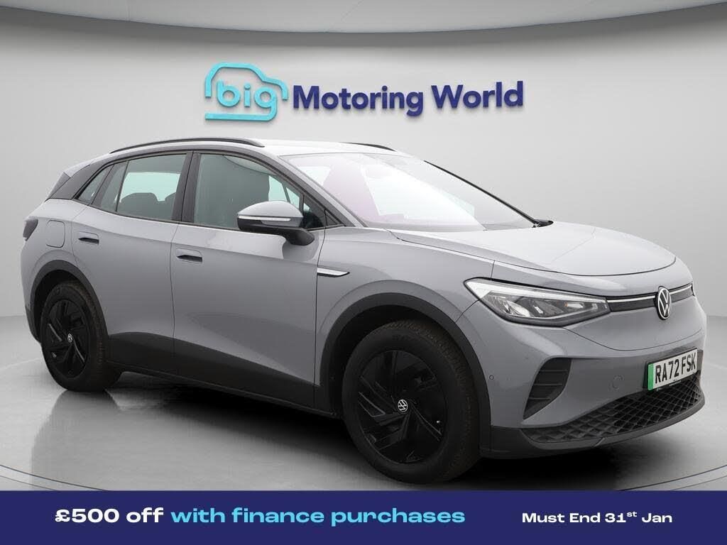 £500 towards your finance depo-Our Volkswagen ID.4 is finished in Grey. Specification includes a range of fantastic features including £500 towards your finance deposit, Comfort Pack, 18'' alloy wheels, Apple CarPlay, Adaptive Cruise Control, Android Auto, Heated Seats, Rear View Camera, Heated Steering Wheel, Internet Specification information is supplied by CAPHPI and may vary to the actual car. This data does not form any part of a buying contact. Please check specification prior to purchase in-store. The MOT is valid until February 2027, visit bigmotoringworld.co.uk for more photos, a 360 tour, service history and a free HPI report.Were BIG on peace of mind and this Grey Volkswagen ID.4 has completed our comprehensive 200 point inspection and passed all checks. Its ready for you to drive away with immediate collection in-store. We include a 90-day warranty as standard plus an option to extend for up to 3 years.Reserve this car exclusively for you, safely and securely at bigmotoringworld.co.uk, with a fully refundable £99 deposit. Test drive before you buy, with no commitment, no hassle and a completely haggle free experience. Still searching and want to see thousands more cars? We are BIG on choice with over 8000 cars to choose from.Visit our award winning web site bigmotoringworld.co.uk.Were Big Motoring World and were BIG on what matters to you.