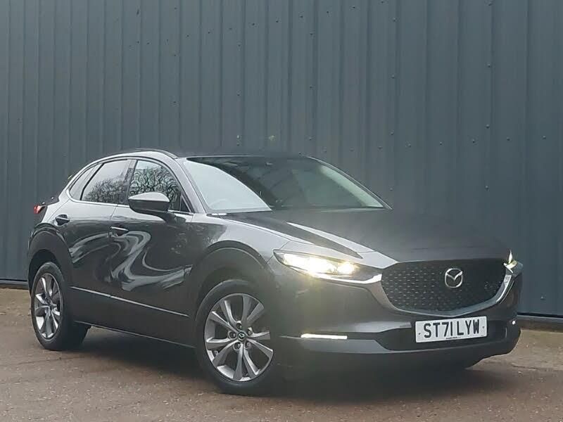 Adaptive cruise control, Android Auto, Apple CarPlay, LED daytime running lights, LED Headlights, 7" TFT Colour driver instrument panel display, 8.8" Colour centre touch screen display with Mazda Connect infotainment, Adaptive cruise control (Mazda radar cruise control), Driver attention alert system, E-call with GPS, Emergency stop signalling system, Front and rear parking sensors, Integrated bluetooth, Integrated Mazda navigation system, Intelligent speed assist, Mazda connected services, Lane keep assist system (LAS) with Lane departure warning system (LDWS), Power lift gate, Reversing camera, Service indicator, Traffic sign recognition, Cylinder Deactivation, i-stop, 2 USB charging ports in front inner central armrest, AM / FM / DAB radio with 8 speakers, Multimedia Commander including separate volume dial, Steering wheel mounted audio/bluetooth controls, Adaptive LED Headlights, Auto dimming driver's door mirror, Auto headlight levelling, Frameless auto dimming interior rear view mirror, Rain sensing front wipers with adjustable speed and intermittent wipe, Heated front seats with 3 stage setting, DSC - Dynamic Stability Control, Electronic parking brake with auto disengage function and auto hold function, Hill launch assist, Mild Hybrid system with regenerative braking, Remote central locking with deadlocking and automatic door lock when driving, Smart keyless entry, Thatcham accredited alarm and immobiliser, 18" Silver alloy wheels, Emergency tyre repair kit