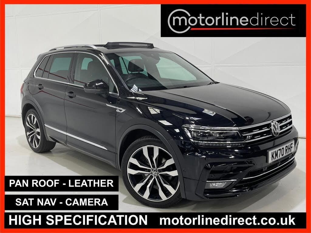 FINANCE & PART EXCHANGE AVAILABLE* - Only 2 registered keepers & 24,351 miles from new, SERVICE HISTORY, 2 KEYS- this FANTASTIC VW TIGUAN 2.0 TDI R-LINE TECH AUTOMATIC is finished in stunning sports Deep Black Pearlescent & is complimented with contrasting full black Vienna leather sports trim and extends itself to the following additional features - VW R-Line Sports styling, full electric tilt & sliding glass panoramic sunroof with electric blind, on board satellite navigation system, 360 camera, virtual dash, 3 zone climate control / automatic air conditioning, trip computer, adaptive cruise control with speed limiter, leather trimmed multi function steering wheel with paddle shift, front & rear park distance control, park assist, driver & passenger heated front seats, driver seat electrically adjustable with memory, Bluetooth telephone prep, DAB digital radio, media input, App Connect - Apple CarPlay / Android Auto / Mirror Link, voice command, keyless entry & start, start / stop, ambient lighting, electric tailgate, folding rear tray tables, front assist, roof rails, lumbar support, lane assist, driving modes, electric heated & folding exterior mirrors, dynamic light assist, LED auto headlights, rain sensor, power assisted steering, abs, airbags, electric mirrors, electric mirrors, electric windows, remote central locking, head restraints, VW 20'' sports alloy wheels, VW anti theft system. ***FINANCE AVAILABLE - subject to status. T&C's apply.***PART EXCHANGE AVAILABLE***ALL VEHICLES ARE HPI & NATIONAL MILEAGE REGISTER CHECKED***THE AA WARRANTY IS SUBJECT TO TERMS & CONDITIONS AND DOES NOT COVER VEHICLES THAT ARE BEING USED FOR TAXI, PRIVATE HIRE, CHAUFFEURING PURPOSES OR FOR REWARD.***Please note, that the specifications/components/features etc. are generic to that vehicle of the type advertised but may not be included in the specific vehicle that is for sale. It is for the intended purchaser to satisfy themselves of the presence or absence of any specifications before sale.-PANORAMIC ROOF-NAV-LEATHER-SPECS INCLUDE AMG M SPORT S LINE QUATTRO 4X4 AWD NAV LEATHER SUNROOF PANORAMIC HEAD UP & ULEZ MODELS