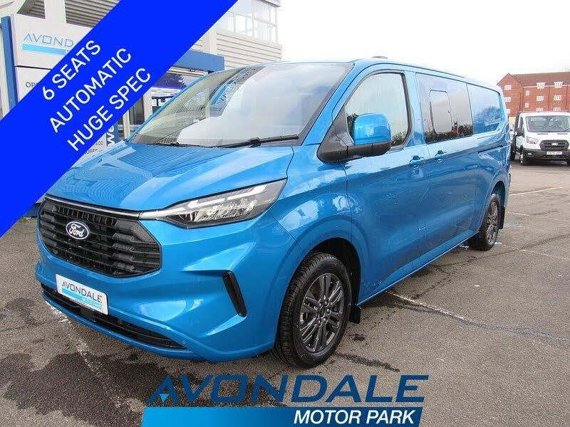 DRIVE AWAY TODAY, HIGH SPECIFICATION; FORD TRANSIT DOUBLE CAB IN VAN IN AQUA BLUE. THIS DELIVERY MILEAGE FORD TRANSIT CUSTOM HAS THE EURO 6 ENGINE AND AUTOMATIC GEARBOX PLUS BENEFITS WITH 6 SEATS, SATELIITE NAVIGATION, 230 POWER SUPPLY, REVERSING CAMERA, UPGRADED ALLOY WHEELS, PRIVACY GLASS, HEATED FRONT SEATS, ADAPTIVE CRUISE CONTROL, KEYLESS ENTRY, HEATED FRONT SCREEN, LED LIGHTING, AIR CON, APPLE/ ANDROID CAR PLAY PLUS A WHOLE LOT MORE. ANY INSPECTION / TEST DRIVE WELCOME- THE UK'S VAN SUPERSTORE, WITH OVER 200 VEHICLES IN STOCK, ON ONE SITE- LOW FINANCE OPTIONS INCLUDING HP WITH BALLOON PRODUCTS- APPLY ON OUR WEBSITE- RAC'S LARGEST APPROVED COMMERCIAL RETAILER01633 444 999