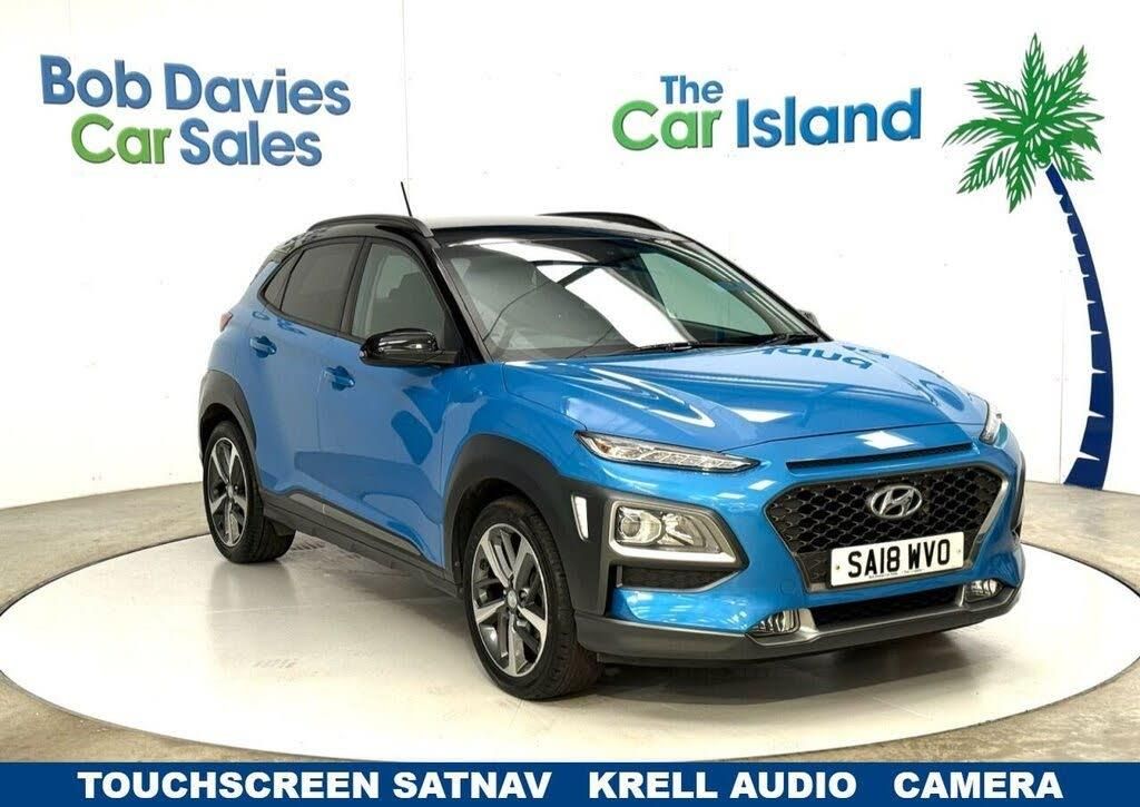 Stunning and stylish Hyundai Kona, One Owner From New woth Full Service History. Presented in Blue Lagoon Metallic with SATNAV, Touchscreen Apple CarPlay, Mirror Link Phone & Music Streaming, Krell Premium Sounds, Cruise Control, Climate Control, Reversing Camera & Park Guidance, Lane Assist, Driving Aids, AUX/USB Inputs, 2 Keys, 18" Alloy Wheels, Privacy Glass, EURO 6 to list a few. ****** Bob Davies Car Sales is established as a trusted supplier of quality cars. Family business providing low mileage cars for over 40 years. High standards, great reputation & 5-star customer service. Best value in 100 mile radius. ***** Request a personal walk round on any car and we'll make sure you're happy before reserving, travelling or delivery. No pressure, no fuss, no fees. Secure with £100 refundable deposit.***** We deliver all over the UK to your door with our successful "Mouse to House" delivery. Wherever you live, we will bring your perfect car to you. Feel confident in the quality and condition of our vehicles, our warranty covers the UK.****** Best Rate Finance available to all, even for poor credit. No deposit needed just contact us and we will tailor to suit you. PX Welcome " Quality Cars at Sensible Prices"