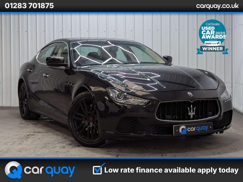 + JUST SERVICED AT A MASERATI SPECIALIST STUNNING EXAMPLE + SOURCE This stunning Maserati Ghibli V6 Auto has been received by ourselves in part exchange at Car Quay against a Bentley, reflecting the calibre of vehicle it has been associated with. OWNERSHIP It has been well maintained by its three previous owners from new. SERVICE HISTORY The vehicle benefits from a comprehensive service history and has just been serviced at a Maserati specialist, offering additional peace of mind. It will also be supplied with a brand new 12 month MOT. PRESENTATION Finished in elegant Black Metallic, this Ghibli has a sleek and sophisticated road presence, perfectly suited to its Italian heritage. The interior is beautifully appointed in Beige leather, creating a luxurious contrast against the exterior and delivering a classic, high-end finish. The upholstery, carpets and trim are all in superb condition for the age and mileage. Powered by the charismatic 3.0 litre V6 petrol engine, the Ghibli delivers the unmistakable sound and performance expected from the Maserati badge, blending executive comfort with sporting pedigree. ADDITIONAL INFORMATION The vehicle is completely HPi clear, with no outstanding finance and not subject to any insurance loss or theft. The mileage is verified as genuine. The buyer will be supplied with the V5 registration document, service history, MOT certificate and a HPi clear certificate. All vehicles are supplied fully valeted prior to sale and with a nationwide warranty. Part exchange is very welcome and finance options are available please call us today for a tailor-made quotation. PLEASE NOTE To avoid any disappointment please call prior to arrival to ensure the vehicle you are interested in has not been reserved by another customer and is on site available for viewing. ABOUT US We are a family owned, multi award winning car dealership with up to 200 quality used vehicles in stock. With up to 100 images per car, walk around videos, bespoke finance quotation tools and the ability to reserve vehicles too, head over to carquay.co.uk and get in touch with our team today. Take a moment to read over 1500 genuine 5 star reviews about our business and keep up to date with what's happening on our social media