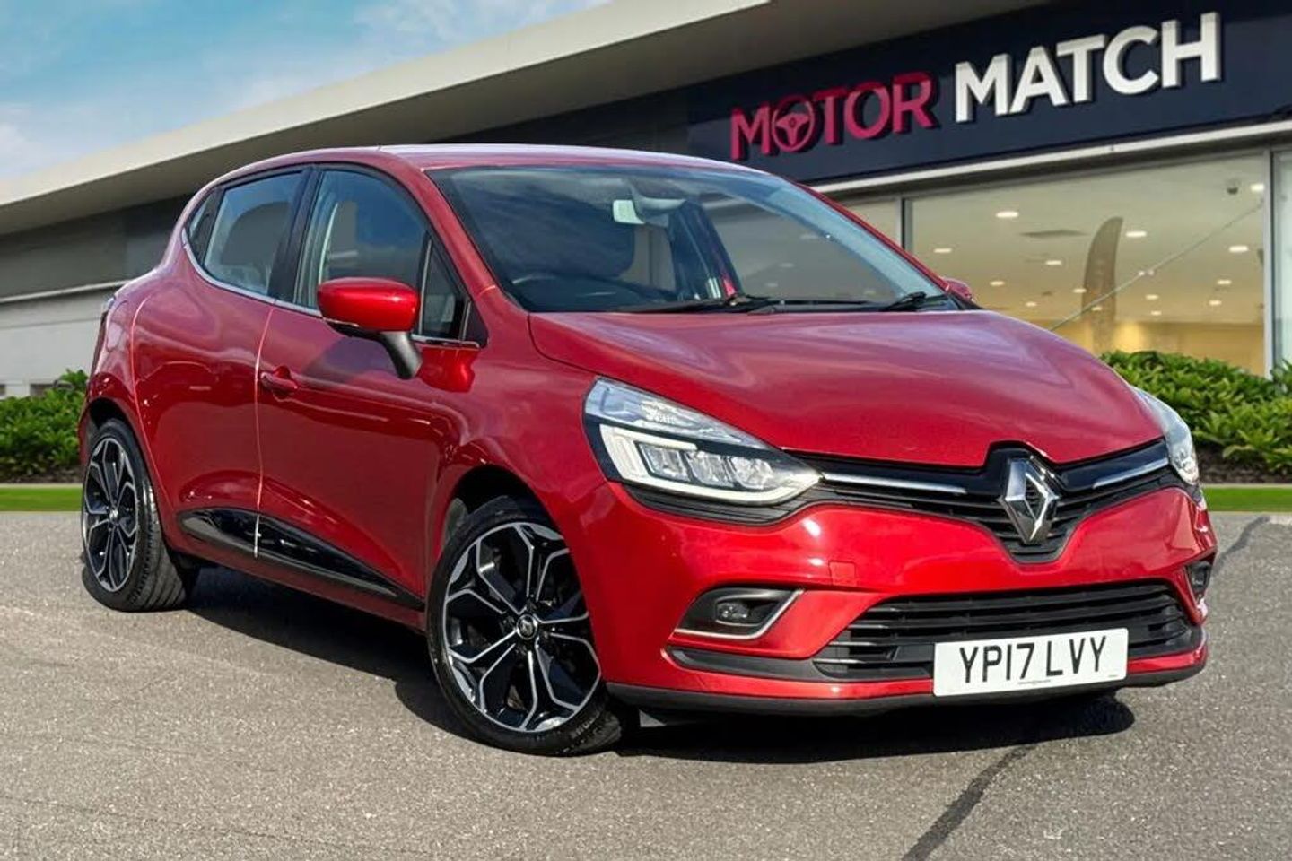 1.2L Storage Shelf Above Glovebox,12V Power Socket,17in Alloy Wheels - Black,2 Storage Spaces for 1 Cup and Miscellaneous Items near Handbrake,4L Front Glovebox,ABS with EBA - Emergency Brake Assist,Airbags - Deactivation - Front and Side - Driver and Passenger,Anti Drill Door Locks and Locking Fuel Cap,Anti-Pinch Function on Front Electric Driver Window,Armrest - Front Centre with Storage Compartment,Automatic Climate Control with One Touch Demist Function and Air Quality Regulator,Automatic Headlights and Front Wipers,Bumpers - Body Coloured,Chrome Window Surrounds,Clio Inscribed Under Renault Diamond Badge,Cruise Control with Speed Limiter,Dashboard - Soft Touch Dark Carbon,Daytime Running Lights - LED,Deadlocking,Driver Seat Belt Height Adjustable,Driver and Passenger Front - Side - Head and Thorax Airbags,EBD - Electronic Brake Distribution,ESC - Electronic Stability Control,ETC - Electronic Traction Control,Eco Mode,Electric Windows - Front and Rear,Exterior Chrome Touches - Front Grille Strips - Boot Lid Strip and Side Door,Exterior Door Handles - Body Coloured,Exterior Door Mirrors - Body Coloured - Heated and Electrically Adjustable and Folding,Exterior Rear Hidden Door Handles,Front Dash Warning Indicator in Case of Heavy Braking,Front Fog Lights,Front and Rear No Seatbelt Warning Sound,Gear Change Indicator,HSA - Hill Start Assist,Handsfree Keycard with Push Button Start-Stop Function,Headlights - Full LED,Headrests - Rear x3,Heating System with Pollen Filter,ISOFIX Child Seat Fixing Points on Rear Outermost Seats,Lower Door Protector - Black Gloss with Chrome Insert,Power Assisted Steering - Electric Variable,RAID - Renault Anti Intruder Device - Automatic Door Locking,Rear Door and Window Child Locking Function for Rear Doors,Rear Parking Sensors,Rear Seats - 60-40 Split and Fixed Base,Rear Spoiler - Body Coloured,Rear Wiper,Remote Central Locking with Thatcham Approved Immobiliser - Thatcham Cat 2,Renault MediaNav,Seats - Drivers Height Adjustment,Single Rear Fog Light,Steering Wheel - Full Leather,Steering Wheel - Height and Reach Adjustable,Trip Computer,Tyre Inflation Kit,Tyre Pressure Warning Light,USB Socket and Jack,Windscreen Wipers - Variable Speed,Cloth and Synthetic Leather - Black,Flame Red