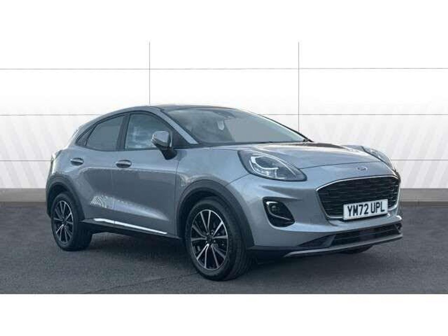 silver interior.Driver impairment monitor, Emergency call service, Ford easy fuel, Lane keeping aid with lane departure warning, Power assist steering, Power start button, Rear parking sensor, Selectable drive modes(Normal, Eco, Sport, Slippery and Trail), Speed sign recognition, Standard suspension, Automatic headlights with auto high beam, Automatic rain sensing wipers, Body colour rear spoiler, LED rear lamps, Power foldable heated door mirrors with puddle lamps, Projector headlamps with LED day time running lights and front fog lamps, Quickclear heated windscreen, Rear side wing doors, Rear wiper, Third brake light, 3 seat bench in 2nd row, Centre console with armrest and stowage, Electronic automatic temperature control (EATC), Ford megabox extended bootspace, Front and rear head restraints, Front floor mats, Manual 2 way passenger seat adjustment, Manual 4 way driver seat adjust with lumbar adjustment, Sensico leather steering wheel/gear knob/handbrake, Single front passenger seat, Titanium cloth upholstery, Ford SYNC 3 navigation pack - Puma, 3 rear seatbelts, Child safety lock, Electronic stability control (ESC) and hill start assist, Pedestrian/cyclist detection & post-collision braking, Pre collision assist system, Tyre pressure monitoring system (TPMS), Thatcham alarm, 17" 10 spoke absolute black machined finish alloy wheel,