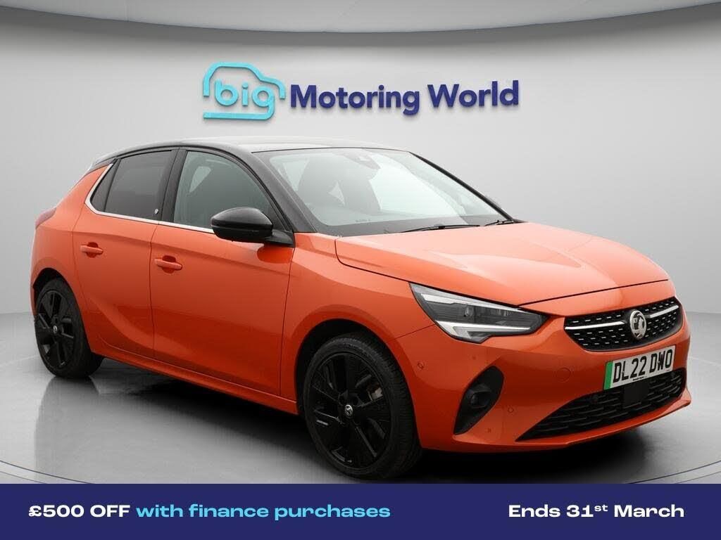 £500 towards your finance depo-Our Vauxhall Corsa Electric is finished in Orange. Specification includes a range of fantastic features including £500 towards your finance deposit, 17'' Alloy Wheels, Apple CarPlay, Lane Assist, Android Auto, Satellite Navigation, Privacy Glass, Heated Seats, Rear View Camera, Heated Steering Wheel Specification information is supplied by CAPHPI and may vary to the actual car. This data does not form any part of a buying contact. Please check specification prior to purchase in-store. The MOT is valid until February 2027, visit bigmotoringworld.co.uk for more photos, a 360 tour, service history and a free HPI report.Were BIG on peace of mind and this Orange Vauxhall Corsa Electric has completed our comprehensive 200 point inspection and passed all checks. Its ready for you to drive away with immediate collection in-store. We include a 90-day warranty as standard plus an option to extend for up to 3 years.Reserve this car exclusively for you, safely and securely at bigmotoringworld.co.uk, with a fully refundable £99 deposit. Test drive before you buy, with no commitment, no hassle and a completely haggle free experience. Still searching and want to see thousands more cars? We are BIG on choice with over 8000 cars to choose from.Visit our award winning web site bigmotoringworld.co.uk.Were Big Motoring World and were BIG on what matters to you.
