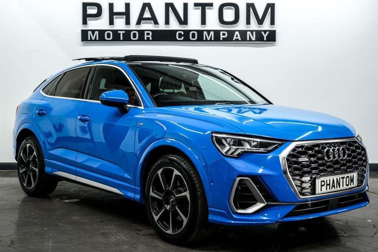 STRICT APPOINTMENT ONLY, 2025 AUTOTRADER HIGHLY RATED AWARD WINNER, LOW RATE FINANCE. Nationwide delivery available. Finished in Turbo Blue we have a lavish Audi Q3 Sportback 45 TFSI S Line Quattro. This vehicle has just two previous owners and comes with Audi services at; 10k, 22k, 30k and 37k. 5 years guarantee with lifetime MOTs available. 5 years guarantee with lifetime MOTs available. Our Q3 comes kitted with an assortment of premium features, some of which include; Panoramic glass sunroof, Driver Assistance Pack, Front Sport seats in front with Alcantara Frequency/Twin leather, 3-Spoke Leather Multi-Function Steering Wheel - S Badging and Grips in Perforated Leather, Privacy glass, Ambient Lighting Pack, Audi Drive Select, Audi Pre-Sense Front with Pedestrian and Cyclist Recognition, Audi Side Assist, Audi Smartphone Interface Includes Wireless Apple CarPlay, Audi Virtual Cockpit - 10.25in Display, Bluetooth Interface, Camera-Based Traffic Sign Recognition, Cruise Control with Speed Limiter, DAB Digital Radio, Door Mirrors - Electrically Folding - Adjustable and Heated with Integrated LED Side Indicators and Kerb-view Function for Passenger Side, Dual-Zone Electronic Climate Control, ESC - Electronic Stabilisation Control inc ABS - ASR and EDL, LED Headlights with LED Daytime Running Lights and Dynamic Rear Indicator, MMI Navigation Plus with High Resolution 10.1in Touchscreen Colour Display, S line Front and Rear Bumpers and Side Skirts, Sport Suspension. At Phantom we concentrate on bespoke vehicles which we spend a lot of time and effort preparing vehicles to be individual, so there will be details about our vehicles that set them aside from others you see on the market today. We would like to point out that Autotrader do not take this into consideration when creating a price marker and although most of our cars are priced as good, great or fair, some cars will say priced high and this is because of the investment we have made in the car to make it stand out from others. We do not make any mechanical enhancements, all enhancements are cosmetic and done in a tactful manner which will replicate what is available on the higher models of that manufacturer. Call or email us to book a viewing at our indoor heated showroom.