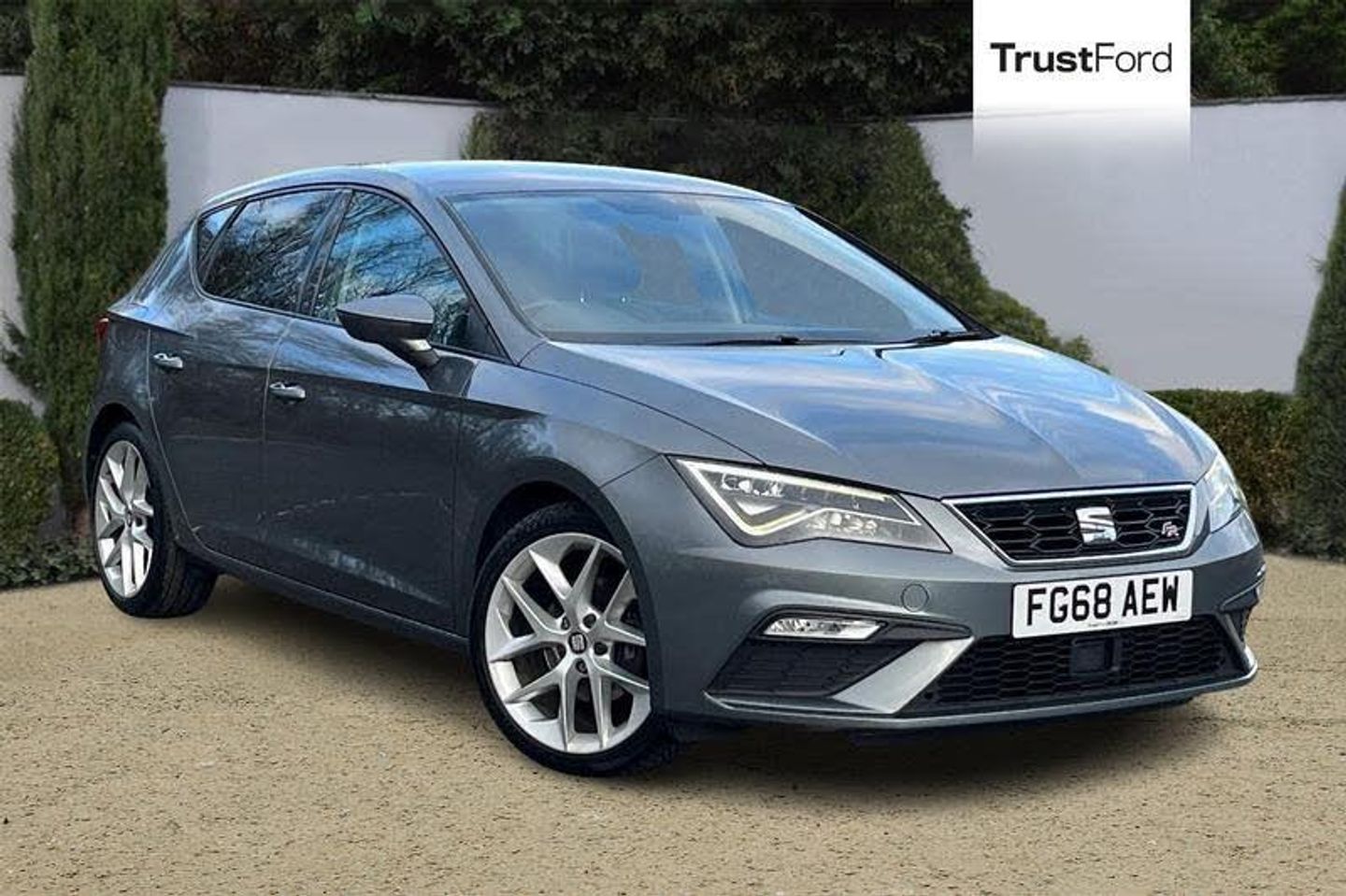 'Lights On' Reminder warning buzzer, 8 touch screen, Bluetooth Handsfree Phone Connection, Low fuel warning light, Outside temperature gauge, Rear parking sensors, Remote fuel flap release, SEAT Drive profile, SEAT logo boot release, Service interval indicator, Trip computer, Voice control system, Aluminium front door sills, Black grille with chrome surround, Body colour door handles, Body coloured bumpers, Body coloured door mirrors, Dark tinted rear windows, Electric adjustable/heated/folding door mirrors, Electric front/rear windows with one touch/auto up/down, Electric headlamp adjustment, High gloss black finish B and C pillars, LED daytime running lights, LED front fog lights, LED Headlights, LED indicators in door mirrors, LED number plate light, LED tail lights, Rear wash/wipe, Reverse activated kerb-view adjustment on passenger's door mirror, Twin exhaust pipes, 12v power point in centre console, 3 height adjustable rear headrests, 60/40 split folding rear seat, Active head restraints, Additional heating and ventilation outlet in rear of centre console, Boot net, Driver seat height adjust, Driver seat lumbar adjustment, Dual zone climate control, Dust/pollen filter, Front adjustable head restraints, Front armrest with storage box, Front cupholders x 2, Front seat and rear pockets, Front sports seats, Front/rear floor mats, Height/reach adjust steering wheel, Illuminated door sills, Illuminated rear centre console, Instrument lighting with brightness control, Leather handbrake, Luggage tie-down hooks, Passenger seat height adjuster, Passenger seat lumbar adjust, Perforated leather steering wheel with red stitching + gear knob, Rear top tether child seat ISOFIX attachment, Storage boxes under front seats, 3 point seatbelts on all rear seats, ABS + traction control, Active pedestrian safety system, Child proof door locks, Collision mitigation braking system, Curtain airbags, Driver/Front Passenger airbags, Drivers knee airbag, Electronic parking brake with auto hold, ESP+EBA, Front assist including city emergency braking, Front seatbelt pretensioners, Front Seatbelt warning, Front side airbags, Hill hold control, Manual passenger airbag deactivation function, Tyre pressure monitoring system