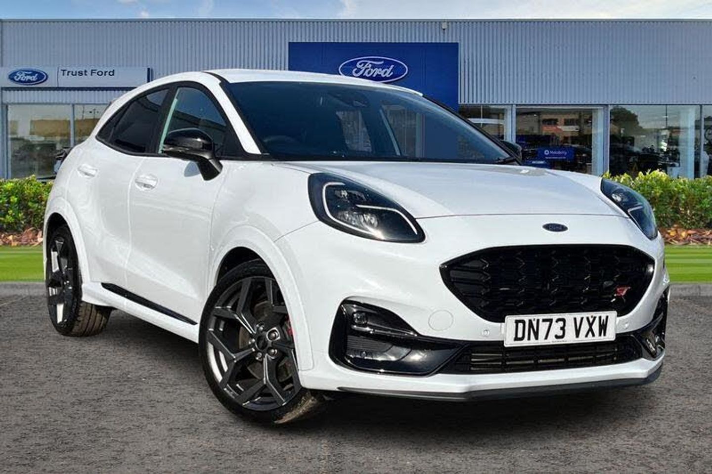 19in Alloy Wheels - 5-Spoke - Magnetite Dark Finish, 6-Way Manual Driver Seat with Lumbar Adjustment, 6-Way Manual Passenger Seat with Lumbar Adjustment, ABS - Anti-lock Braking System, Acoustic Laminated Windscreen, Alloy Sports Pedals, Automatic Dimming Rear View Mirror, Automatic Headlights with Rain-Sensing Wipers and Auto High Beam, B&O Premium Audio System and Ford SYNC 3 Navigation, Carbon-Look Interior Deco Spears, Centre Console - Premium with Openable Stowage Area with USB Connectivity - 2 Cupholders and 12v Power Point, Chrome Dual Exhaust Pipe, Courtesy Lights - Ambient LED Courtesy Lighting - Single Colour, Cruise Control with Intelligent Speed Assist, ESC - Electronic Stability Control and Hill Start Assist, Electric Windows - Front and Rear, Electronic Air Temperature Control - EATC, Emergency Brake Warning - Automatic Hazard Warning Lights, Engine Sound Enhancer, First Aid Kit Strap, Fixed LED Signature Headlamps, Ford KeyFree System, Ford MegaBox Extended Bootspace, Ford Power Starter Button, Front Bumper - Unique ST Design - Body Colour, Front Fog Lights, Front Parking Sensors, Full Digital 12.3in Instrument Cluster, Gearshift Knob - Soft Feel with Metal Grey Stitching, Handbrake - Black Sensico Trimmed with Stitching, Headliner - Deluxe, Instrument Panel - High Level, Intelligent Speed Assistance, LED Rear Lights, Lane Keeping Aid with Lane Departure Warning, Large Rear Spoiler - Body Colour with Centre High Mounted Stop Light, Locking Wheel Nuts, Lower Bodyside Moulding - Painted Accents - Painted Door Spears in High Gloss Black, Post Collision Braking, Power Steering, Power-Foldable Heated Door Mirrors with Puddle Lamps and Puma Logo Projection, Pre-Collision Assist with Autonomous Emergency Braking and Pedestrian-Cyclist Detection, Privacy Glass, Puma Badge, Quickclear Heated Windscreen, Rear Bumper - ST Unique, Rear Parking Sensors, Rear Seats - 2-Way Head Restraint Up-Down, Rear Seats - Second Row 60-40 Folding Seats, Red Brake Calipers, Remote Central-Double Locking, Restrain Device Pack, ST Badge, ST Flat Bottom Steering Wheel with Metal Grey Stitching, ST Front and Rear Mats, ST Logo Projection - From Door Mirrors, ST Suspension, Selectable Driver Modes - Normal - Eco - Sport - Track, Soft-feel Gearshift Boot with Red Stitching, Speed Limiter, Tailgate - Manual, Thatcham Alarm, Traction Control and Emergency Braking Assistance, Trip-Fuel Computer, Tyre Inflation Kit, Tyre Pressure Monitoring System - TPMS, Unique ST Elements to Front and Rear Body Styling Kit, Unique ST Gear Shift Knob, Unique ST Scuff Plates, Winter Pack, Wireless Charging Pad with Electronic Air Temperature Control EATC