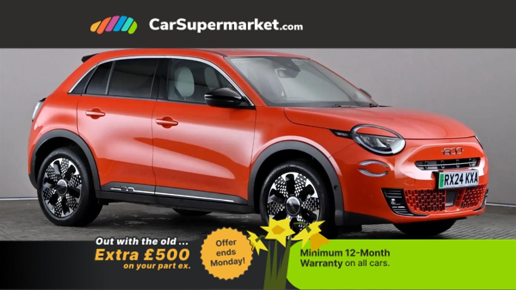 Adaptive Cruise Control, Cruise Control, Blind Spot Monitoring, Bluetooth, Parking Sensors, Lane Departure Warning, Traffic Sign Recognition, Android Auto, Apple CarPlay, Wireless Phone Charging, Sat Nav, Privacy Glass, Automatic Climate Control, Heated Front Seats;Fully electric Fiat 600 La Prima with premium specification. Includes Adaptive Cruise Control, Cruise Control, Blind Spot Monitoring, Bluetooth, Parking Sensors, Lane Departure Warning, Traffic Sign Recognition, Apple CarPlay, Android Auto, Wireless Phone Charging, Sat Nav, Privacy Glass, Automatic Climate Control, Heated Front Seats and 18" Alloy Wheels. Optional Extra: Synthetic Leather ? Fiat Ivory Monogram with Turquoise Details. Last Serviced: 16/08/2025. MOT Due: 29/04/2027.