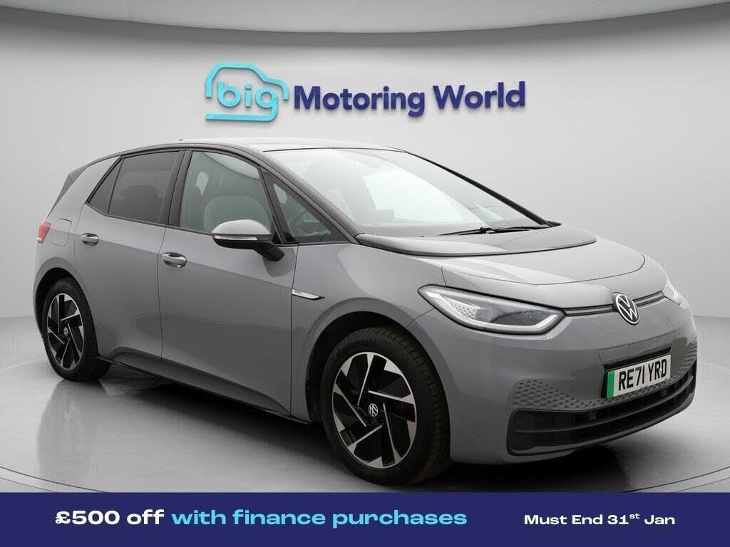£500 towards your finance depo-Our Volkswagen ID.3 comes with optional extras worth £650. Specification includes a range of fantastic features including £500 towards your finance deposit, Panoramic Roof, 18'' alloy wheels, Apple CarPlay, Adaptive Cruise Control, Lane Assist, Android Auto, Satellite Navigation, Privacy Glass, Heated Seats Specification information is supplied by CAPHPI and may vary to the actual car. This data does not form any part of a buying contact. Please check specification prior to purchase in-store. The MOT is valid until December 2026, visit bigmotoringworld.co.uk for more photos, a 360 tour, service history and a free HPI report.Were BIG on peace of mind and this Grey Volkswagen ID.3 has completed our comprehensive 200 point inspection and passed all checks. Its ready for you to drive away with immediate collection in-store. We include a 90-day warranty as standard plus an option to extend for up to 3 years.Reserve this car exclusively for you, safely and securely at bigmotoringworld.co.uk, with a fully refundable £99 deposit. Test drive before you buy, with no commitment, no hassle and a completely haggle free experience. Still searching and want to see thousands more cars? We are BIG on choice with over 8000 cars to choose from.Visit our award winning web site bigmotoringworld.co.uk.Were Big Motoring World and were BIG on what matters to you.