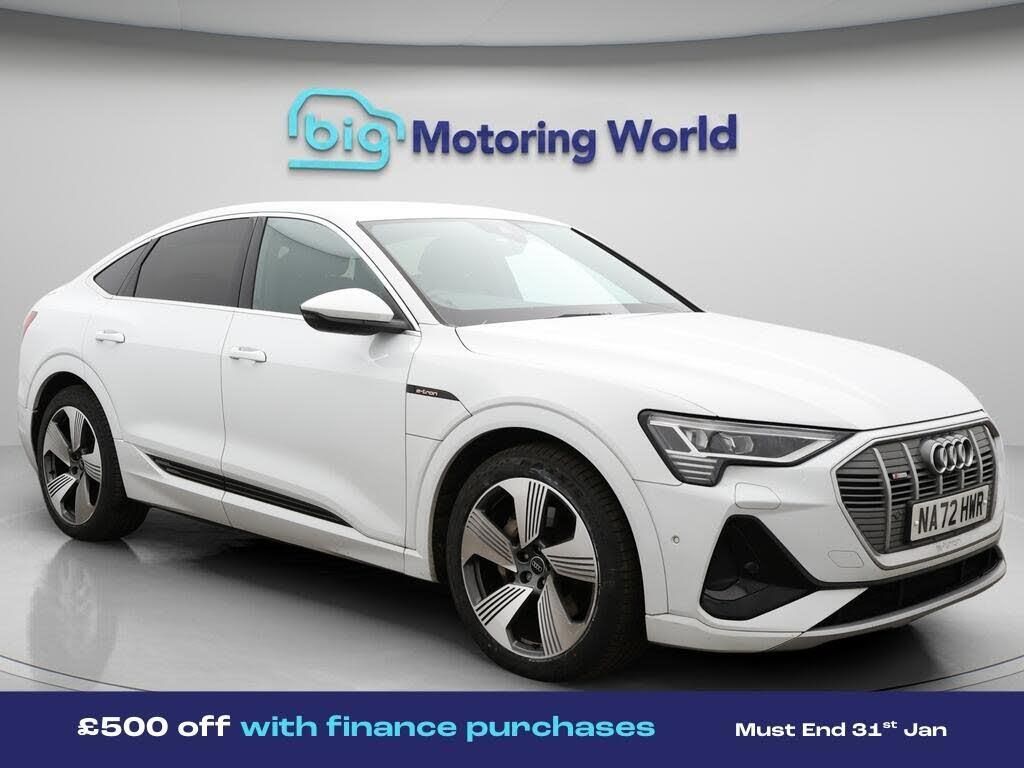 £500 towards your finance depo-Our Audi e-tron is finished in White. Specification includes a range of fantastic features including £500 towards your finance deposit, All Wheel Drive, Leather Seats, Air Suspension, Apple CarPlay, Lane Assist, S Line Body Styling, Android Auto, Satellite Navigation, Privacy Glass Specification information is supplied by CAPHPI and may vary to the actual car. This data does not form any part of a buying contact. Please check specification prior to purchase in-store. The MOT is valid until November 2026, visit bigmotoringworld.co.uk for more photos, a 360 tour, service history and a free HPI report.Were BIG on peace of mind and this White Audi e-tron has completed our comprehensive 200 point inspection and passed all checks. Its ready for you to drive away with immediate collection in-store. We include a 90-day warranty as standard plus an option to extend for up to 3 years.Reserve this car exclusively for you, safely and securely at bigmotoringworld.co.uk, with a fully refundable £99 deposit. Test drive before you buy, with no commitment, no hassle and a completely haggle free experience. Still searching and want to see thousands more cars? We are BIG on choice with over 8000 cars to choose from.Visit our award winning web site bigmotoringworld.co.uk.Were Big Motoring World and were BIG on what matters to you.